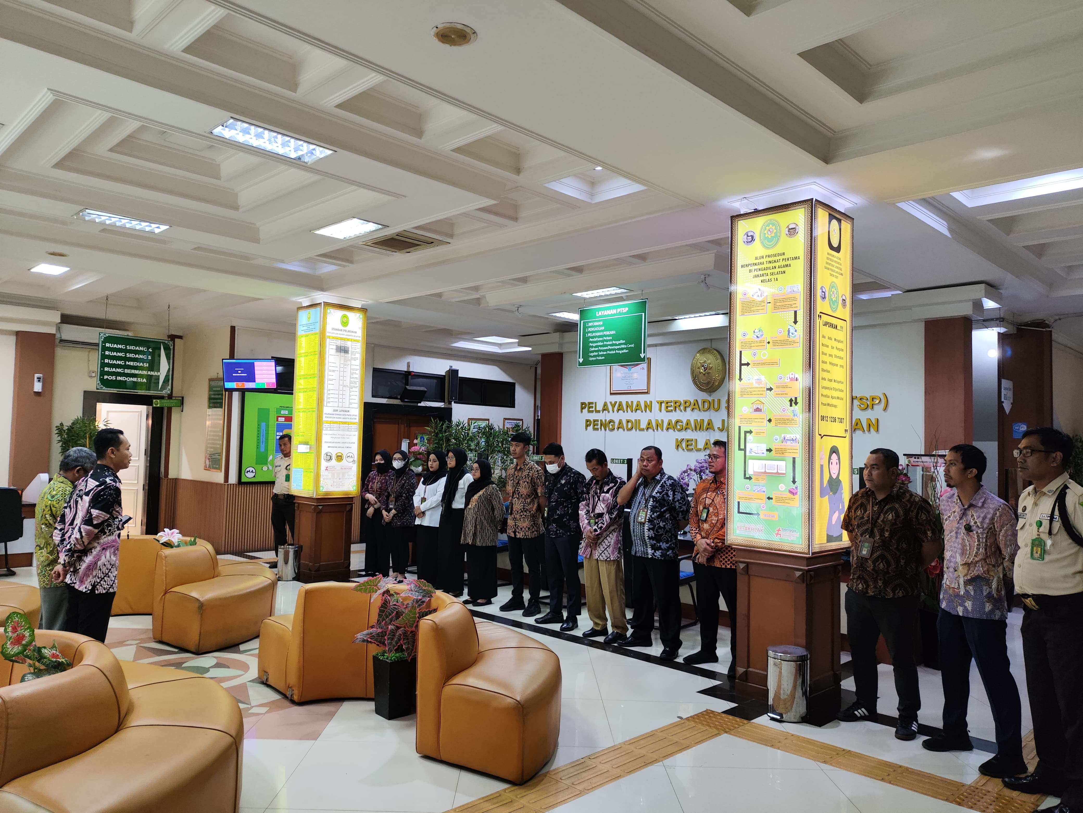 Bertempat di ruang Pelayanan Terpadu Satu Pintu (PTSP) Pengadilan Agama Jakarta Selatan, Panitera Akhmad Sahid, S.H., bersama Plt. Sekretaris Yarno, S.H., M.H., memimpin briefing pagi kepada seluruh petugas PTSP. Briefing rutin ini bertujuan untuk memastikan kualitas pelayanan publik tetap terjaga dan meningkatkan koordinasi antarbagian.