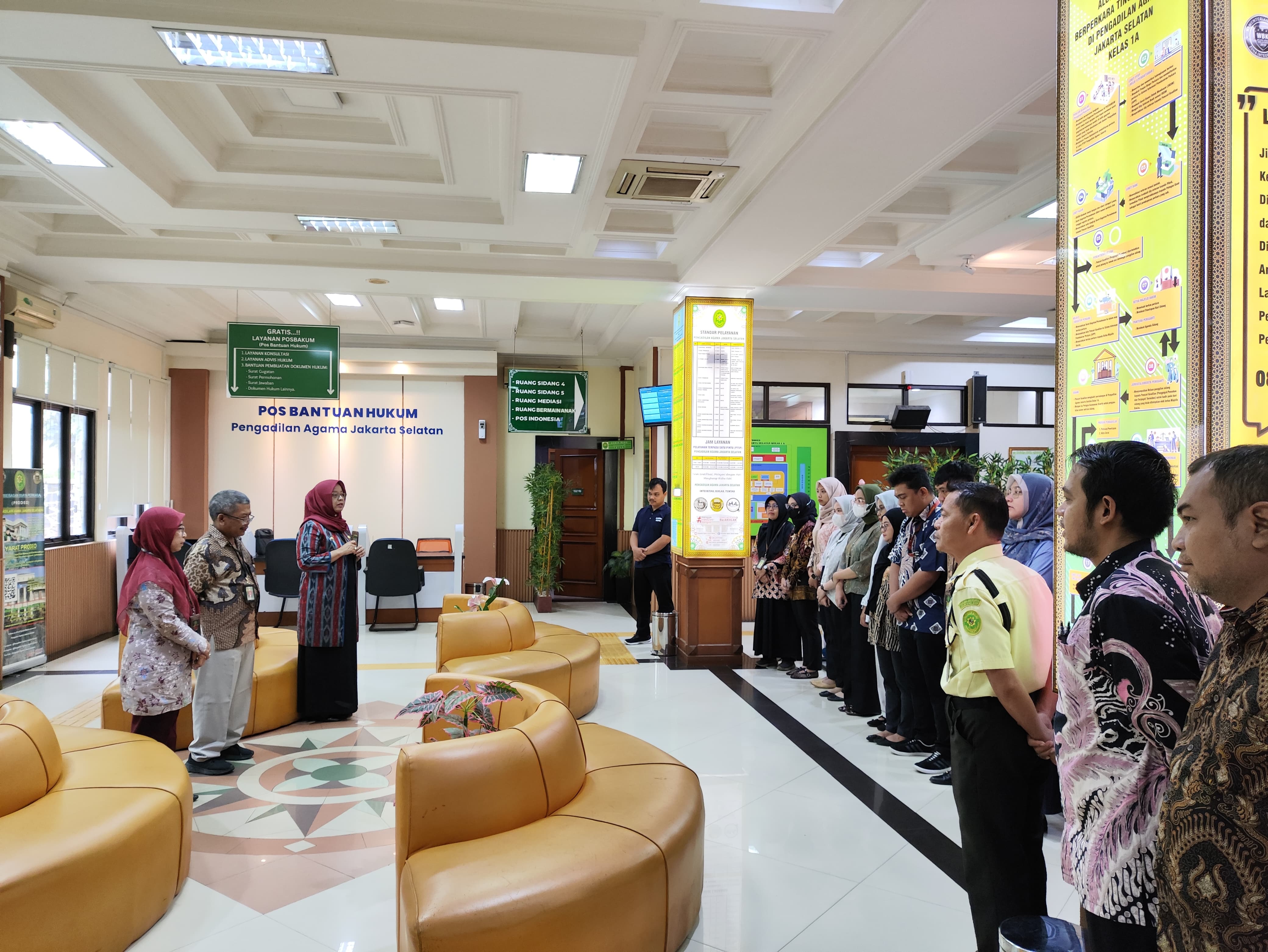 Guna meningkatkan kualitas pelayanan kepada masyarakat, Pengadilan Agama Jakarta Selatan melaksanakan briefing pagi rutin kepada para petugas Pelayanan Terpadu Satu Pintu (PTSP). Kegiatan ini dipimpin langsung oleh Panitera Pengadilan Agama Jakarta Selatan, Bapak Akhmad Sahid, S.H., bersama Sekretaris, Ibu Andi Subhi, S.Sos., serta didampingi oleh Panitera Gugatan.