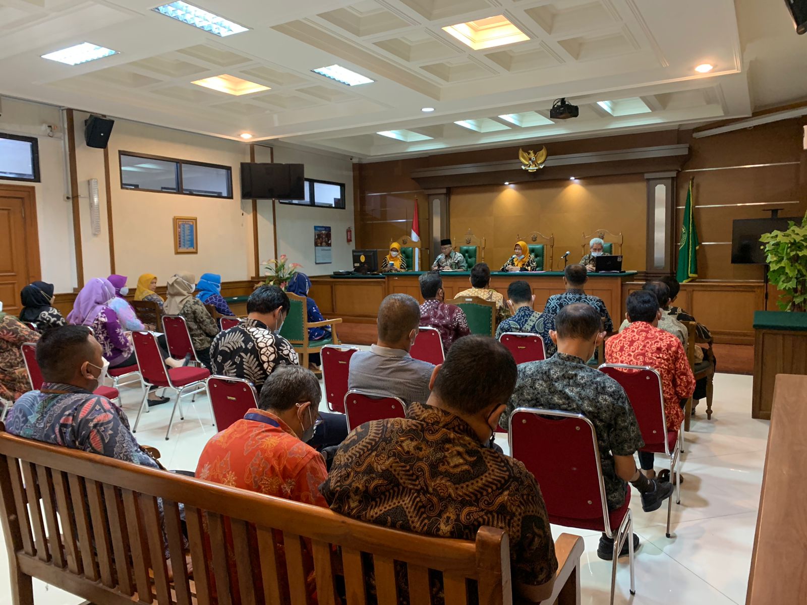 Kamis (19/11/21), Pengadilan Tinggi Agama DKI Jakarta yang diwakili oleh Dra. Hj. Kamariah, S.H., M.H. dan tim mengadakan ekspos hasil pemeriksaan terkait teknis dan yutisial di Pengadilan Agama Jakarta Selatan yang telah dilaksanakan dari tanggal 16-18 November 2021. Adapun hasil pemeriksaan secara keseluruhan, semua bagian sudah baik. Hanya saja agar menjadi lebih baik lagi, ada beberapa hal yang harus diperbaiki, terkait berkas perkara relaas, putusan, penyelesaian perkara, pencabutan gugatan/permohonan, dan lain sebagainya. Drs. Ahmad Nur, M.H. menyampaikan agar temuan yang disampaikan segera akan ditindaklanjuti oleh semua bagian untuk kinerja yang lebih baik lagi. Setelah ekspos temuan selesai dilanjutkan dengan serah terima berkas temuan dari ketua Tim Pemeriksa Pengadilan Tinggi Agama DKI Jakarta kepada PLT Ketua Pengadilan Agama Jakarta Selatan.