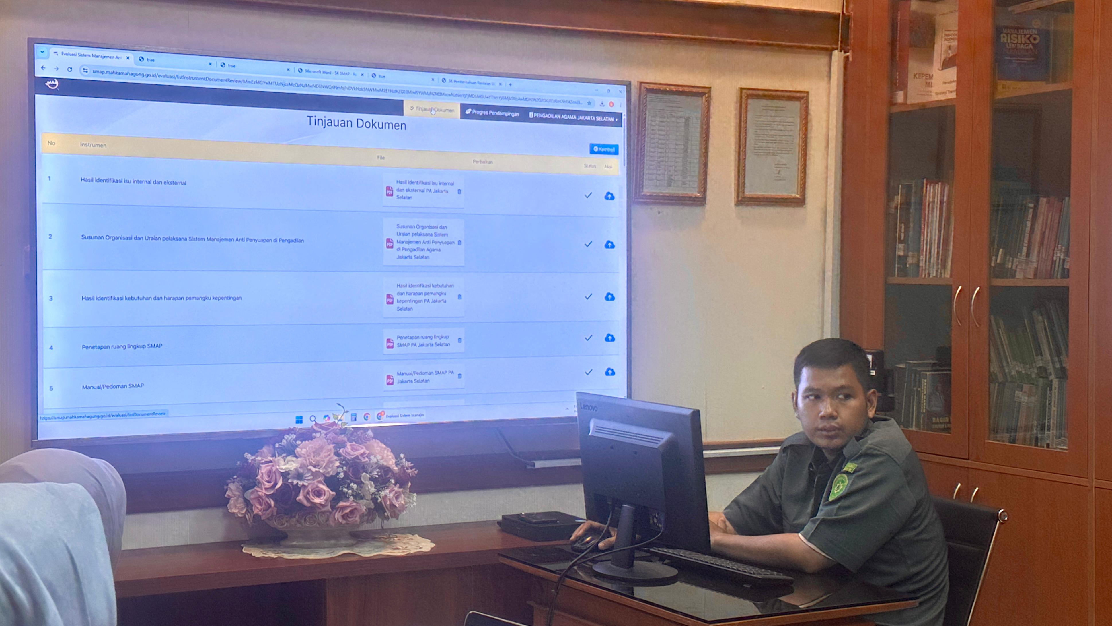 Humas PA Jakarta Selatan – Dalam rangka memastikan kesiapan maksimal menghadapi tahap Penilaian Evaluasi Sistem Manajemen Anti Penyuapan (SMAP) Tahun 2025, Pengadilan Agama Jakarta Selatan melaksanakan rapat monitoring dan evaluasi (monev) bersama seluruh Tim SMAP.
