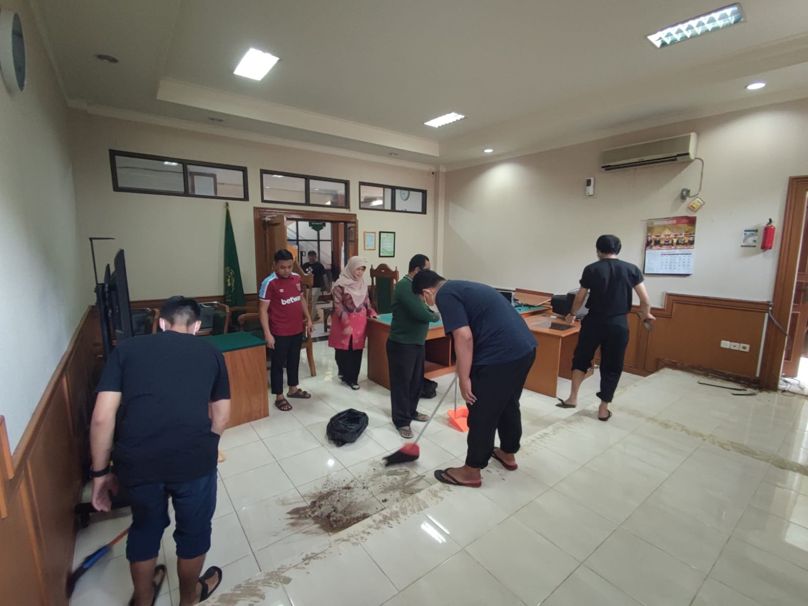 Selepas melaksanakan senam, para PPNPN bersama-sama dengan semangat menjalankan kegiatan Jumat bersih, pembagian tugas dilakukan agar kerja bhakti dapat berjalan dengan optimal, sebagian ada yang membersihkan lingkungan kantor bagian luar dan sebagian lagi membersihkan kantor bagian dalam lantai atas dan bawah. Walaupun kegiatan ini dilaksanakan secara bersama-sama namun tidak mengganggu pelayanan kepada masyarakat pencari keadilan, karena beberapa petugas tetap menjalankan kegiatan pelayanan.
