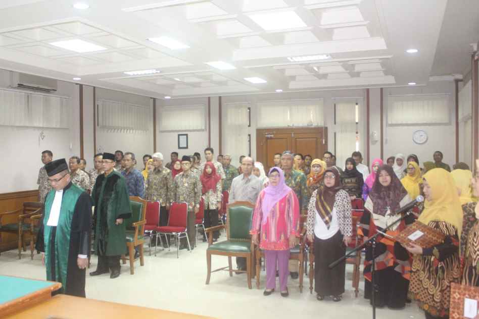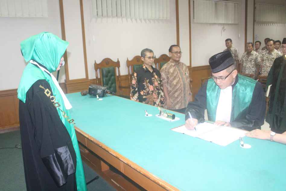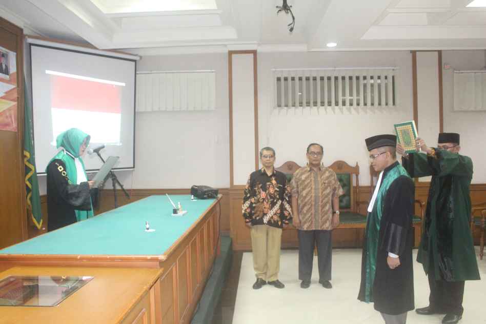 Acara berikutnya adalah sesi pelantikan yang dibacakan lansung oleh Wakil Ketua Pengadilan Agama Jakarta Selatan dan Penandatanganan Pakta Integritas oleh hakim baru menjadi kegiatan berikutnya setelah pemutaran lagu nasional Padamu Negeri di ruang sidang tersebut.