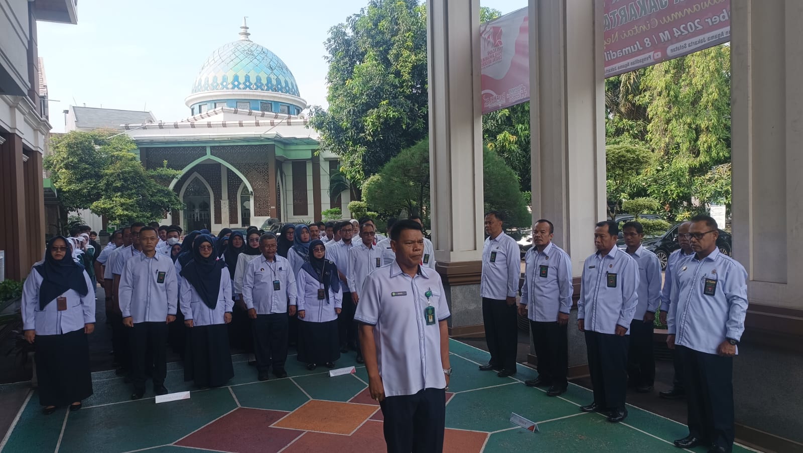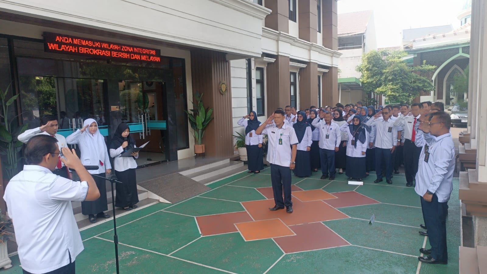 Pengadilan Agama Jakarta Selatan kembali menggelar apel pagi di halaman kantor Pengadilan Agama Jakarta Selatan. Pembina Apel oleh Wakil Ketua Pengadilan Agama Jakarta Selatan Bapak Dr. Sultan. S.Ag., S.H., M.H. Dalam amanatnya, wakil ketua menyampaikan bahwa Pengadilan Agama Jakarta Selatan masih berada dalam rangka pengamatan oleh mistery shopper, oleh karena itu penting bagi semua pegawai untuk menjaga integritas, tidak melakukan hal-hal yang bisa mencederai kepercayaan publik dan tidak melakukan langka-langkah yang melanggar prinsip pelayanan. Selanjutnya, beliau menyampaikan bahwa seiring dengan peningkatan e-Court yang sampai akhir bulan telah mencapai 65% dan mudah-mudahan dalam dua bulan kedepan diperkirakan akan mencapai 80-90%. - PAJS Integritas Ikhlas Tuntas -