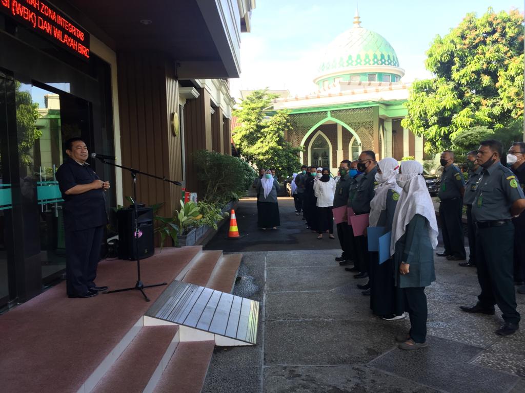 Dalam amanatnya, Ketua PA Jakarta Selatan tak luoa mengucapkan selamat kepada para pegawai yang menerima SK. Kedepannya, setiap pegawai yang menerima SK akan diserahkan di setiap acara apel pagi. Beliau juga menyampaikan beberapa hal diantaranya mengenai kegiatan apa saja yang akan dilakukan selama Bulan Ramadhan mengingat hari ini adalah hari terakhir di Bulan Sya’ban. Kegiatan tersebut diantaranya buka puasa bersama anak yatim, buka puasa bersama khusus internal, kegiatan tadarusan, dan lainnya yang nantinya akan dikoordinasikan kembali oleh pejabat struktural PA Jakarta Selatan. (Ay)