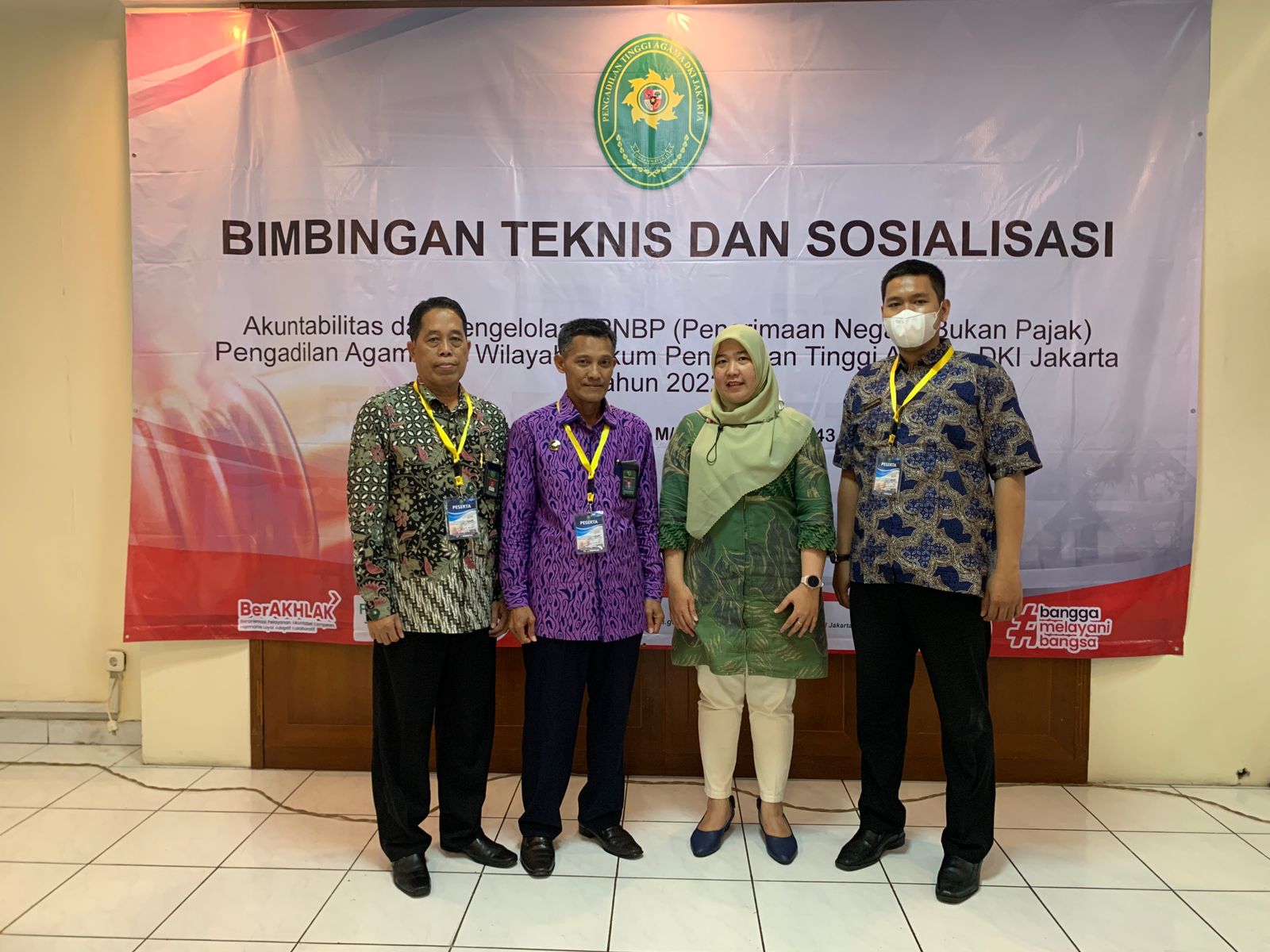 Kegiatan Bimtek dan Sosialisasi PNBP ini dihadiri oleh sekitar 37 peserta dari PTA DKI Jakarta dan Pengadilan Agama Se-Wilayah Hukum PTA DKI Jakarta. Peserta yang mewakili PA Jakarta Selatan antara lain Suhendra, S.Sos., M.M (Sekretaris), Muhammad Farhan Alfarabi, A.Md (Pemelihara Sarpras), Muhammad Khotib , S.H., M.H. (Panitera Muda Hukum), dan Riska Mizalfi , S.Kom. M.H. (Juru Sita Pengganti / Kasir).