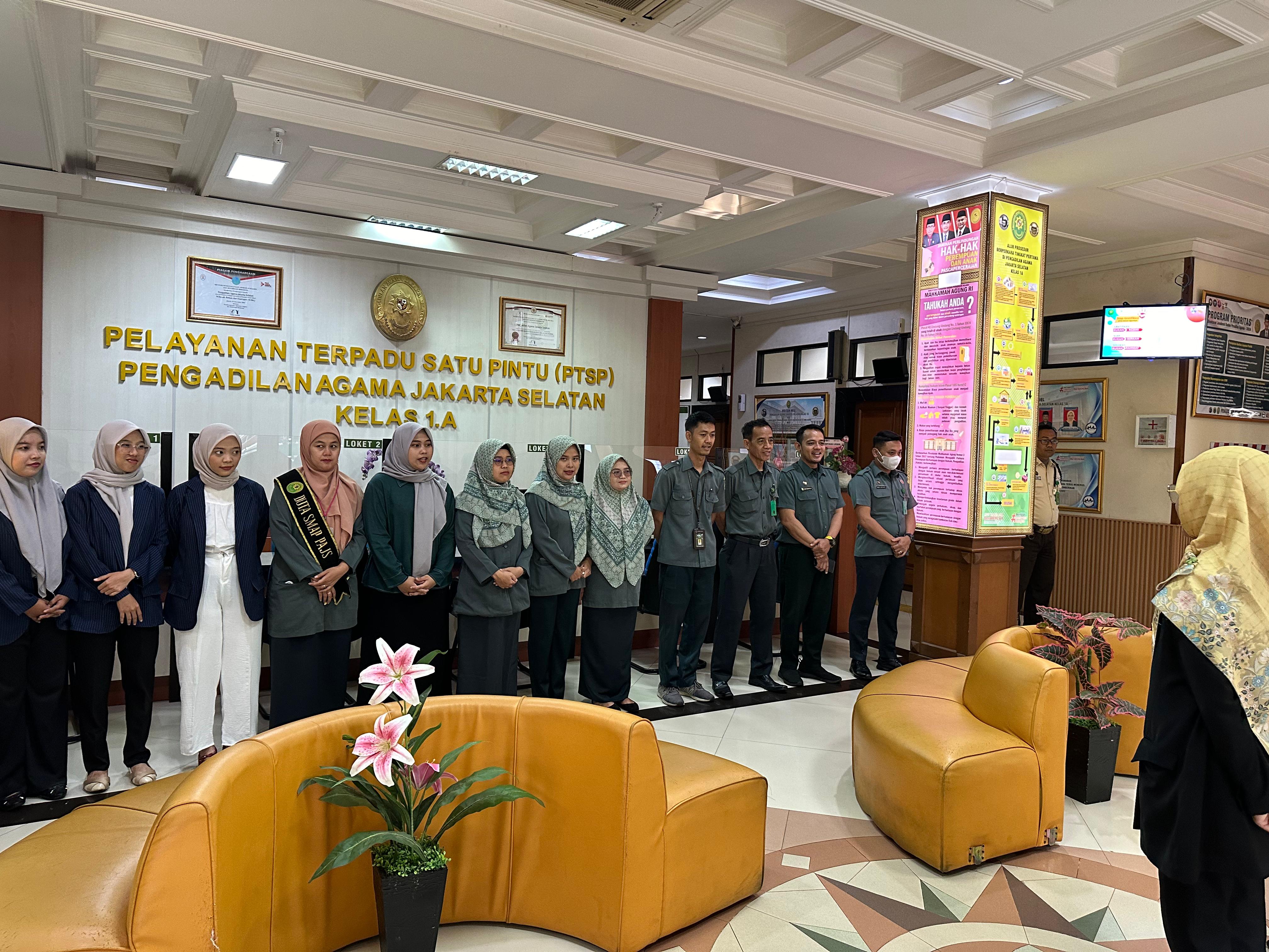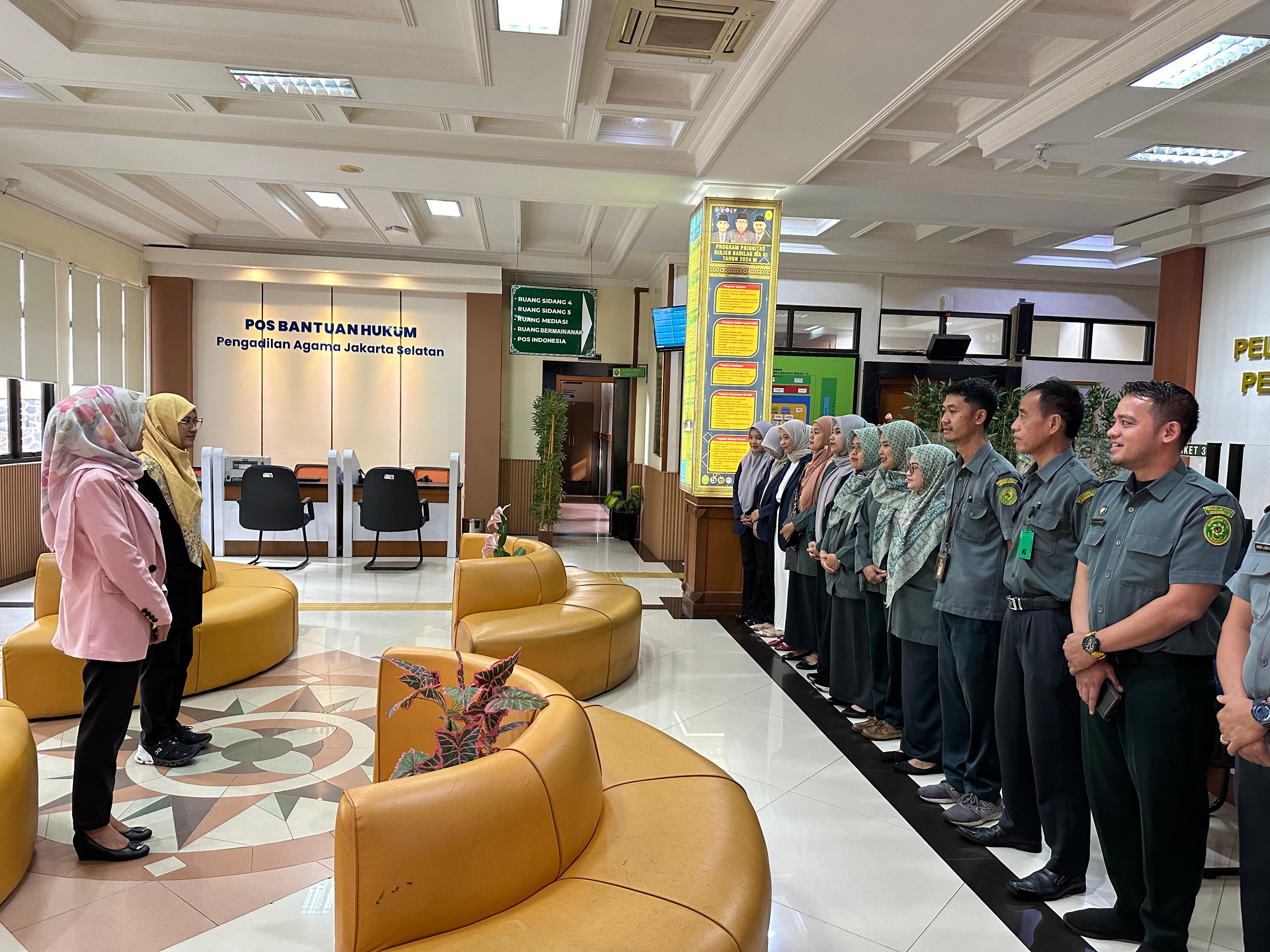 Jakarta Selatan - 03 September 2024 Briefing Pagi Pengadilan Agama Jakarta Selatan kali ini dipimpin oleh Panmud Hukum Etik Korniawati, S.H., M.H. didampingi Kasubbag Umum dan Keuangan Lian Merilan, S.E Dalam pembinaannya, Panmud Hukum menghimbau kepada seluruh petugas pelayanan untuk bersinergi memberikan pelayanan yang prima kepada masyarakat pencari keadilan tentunya dengan menerapkan Budaya 5S, dilanjutkan arahan dari Kasubbag umum untuk senantiasa menjaga kebersihan ruang pelayanan dan ketertiban ruangan PTSP - PAJS Integritas Ikhlas Tuntas -