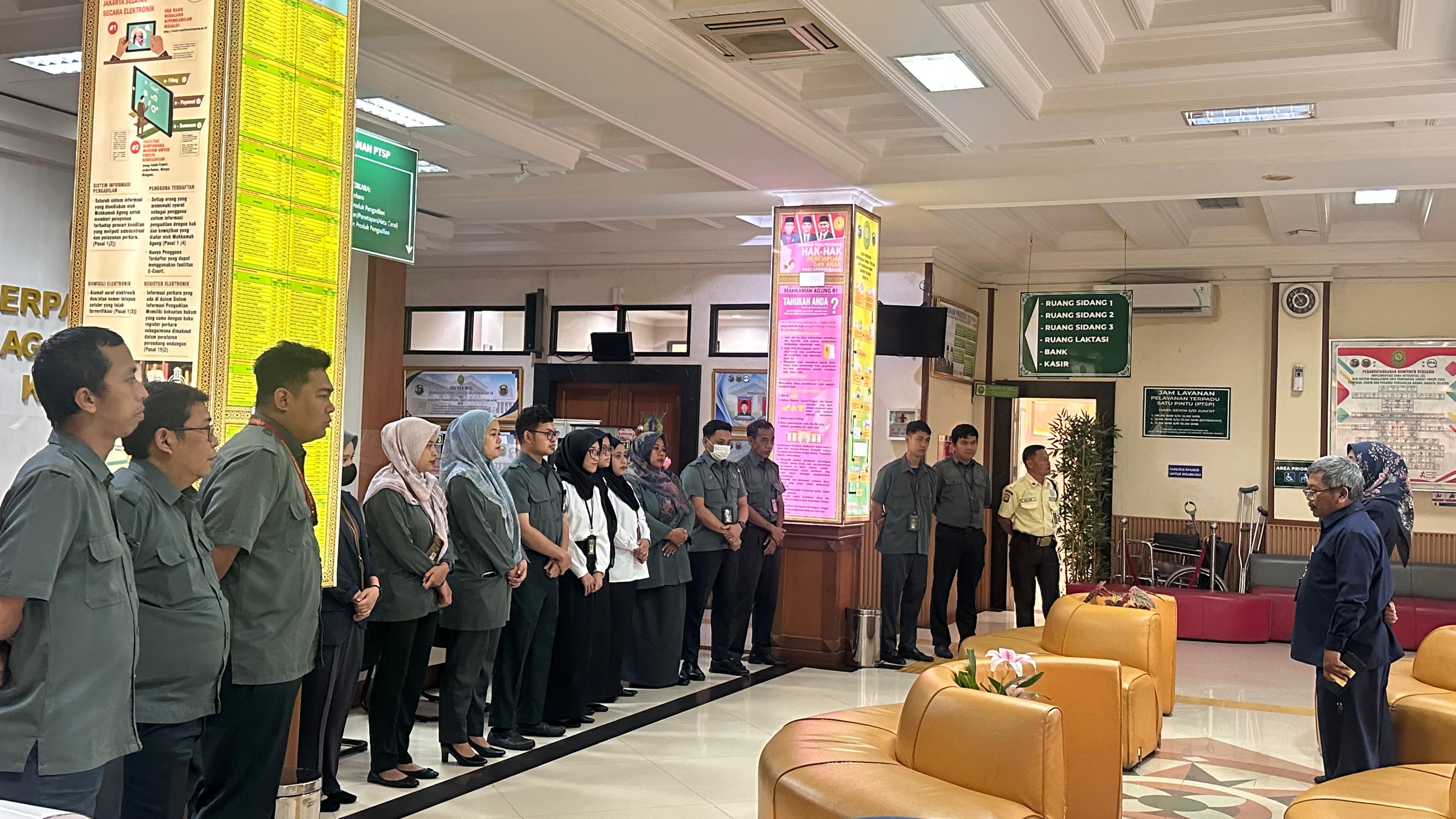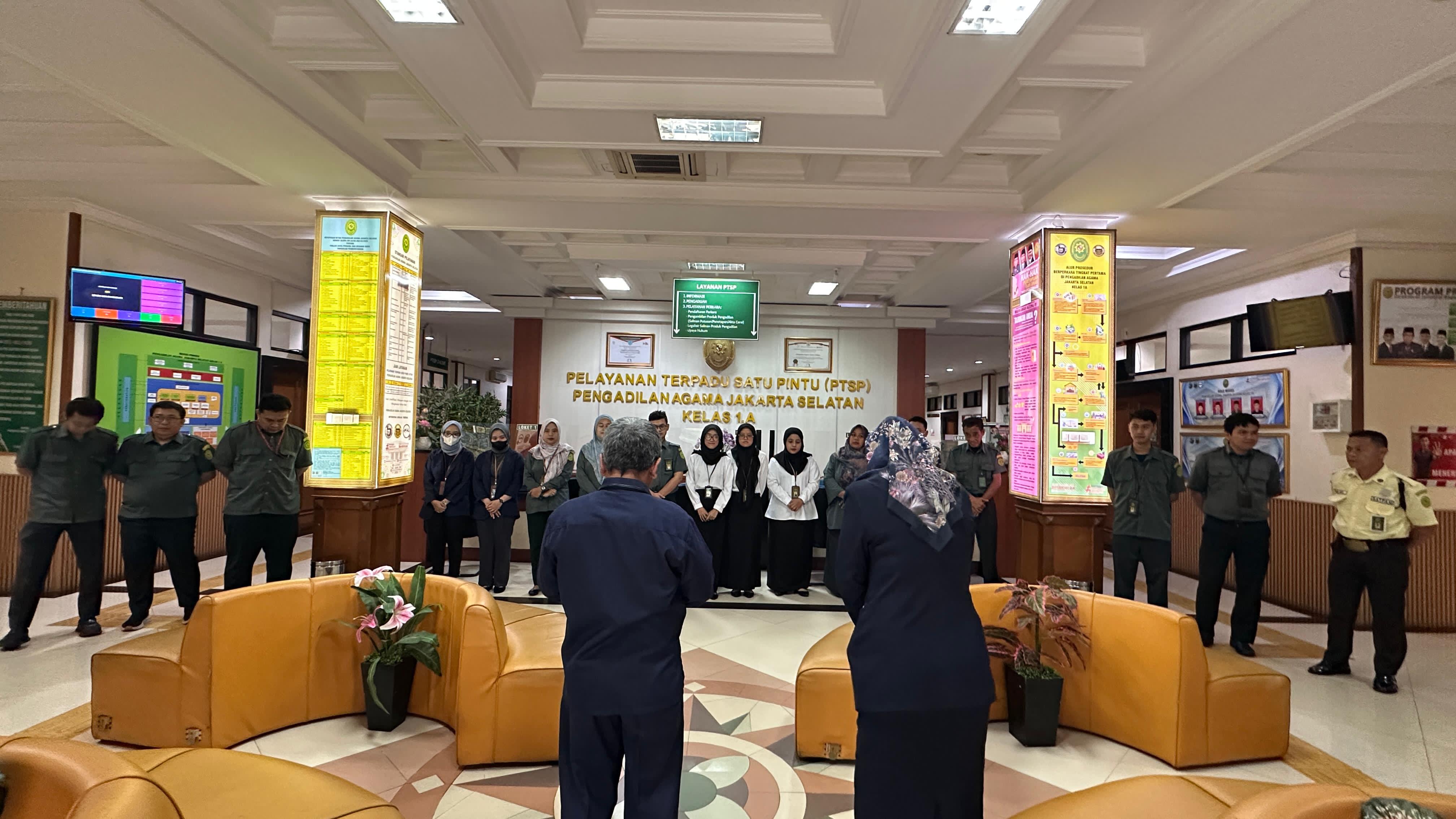 Pengadilan Agama Jakarta Selatan kembali menggelar kegiatan briefing pagi rutin bagi para petugas Pelayanan Terpadu Satu Pintu (PTSP). Kegiatan ini dipimpin langsung oleh Panitera, Akhmad Sahid, S.H., dan didampingi oleh Panitera Muda Hukum, Fitri Astini, S.H., M.H.