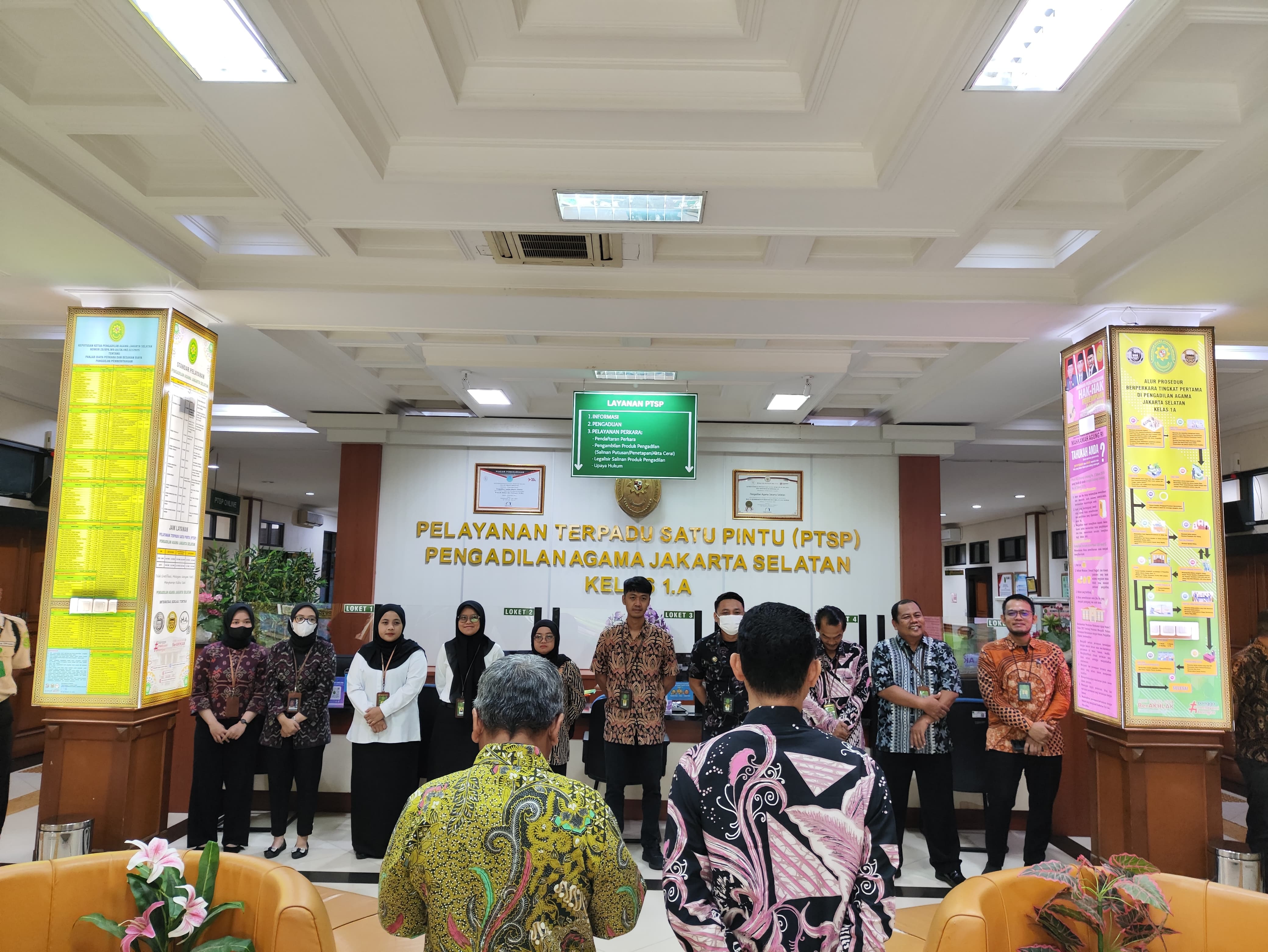 Bertempat di ruang Pelayanan Terpadu Satu Pintu (PTSP) Pengadilan Agama Jakarta Selatan, Panitera Akhmad Sahid, S.H., bersama Plt. Sekretaris Yarno, S.H., M.H., memimpin briefing pagi kepada seluruh petugas PTSP. Briefing rutin ini bertujuan untuk memastikan kualitas pelayanan publik tetap terjaga dan meningkatkan koordinasi antarbagian.