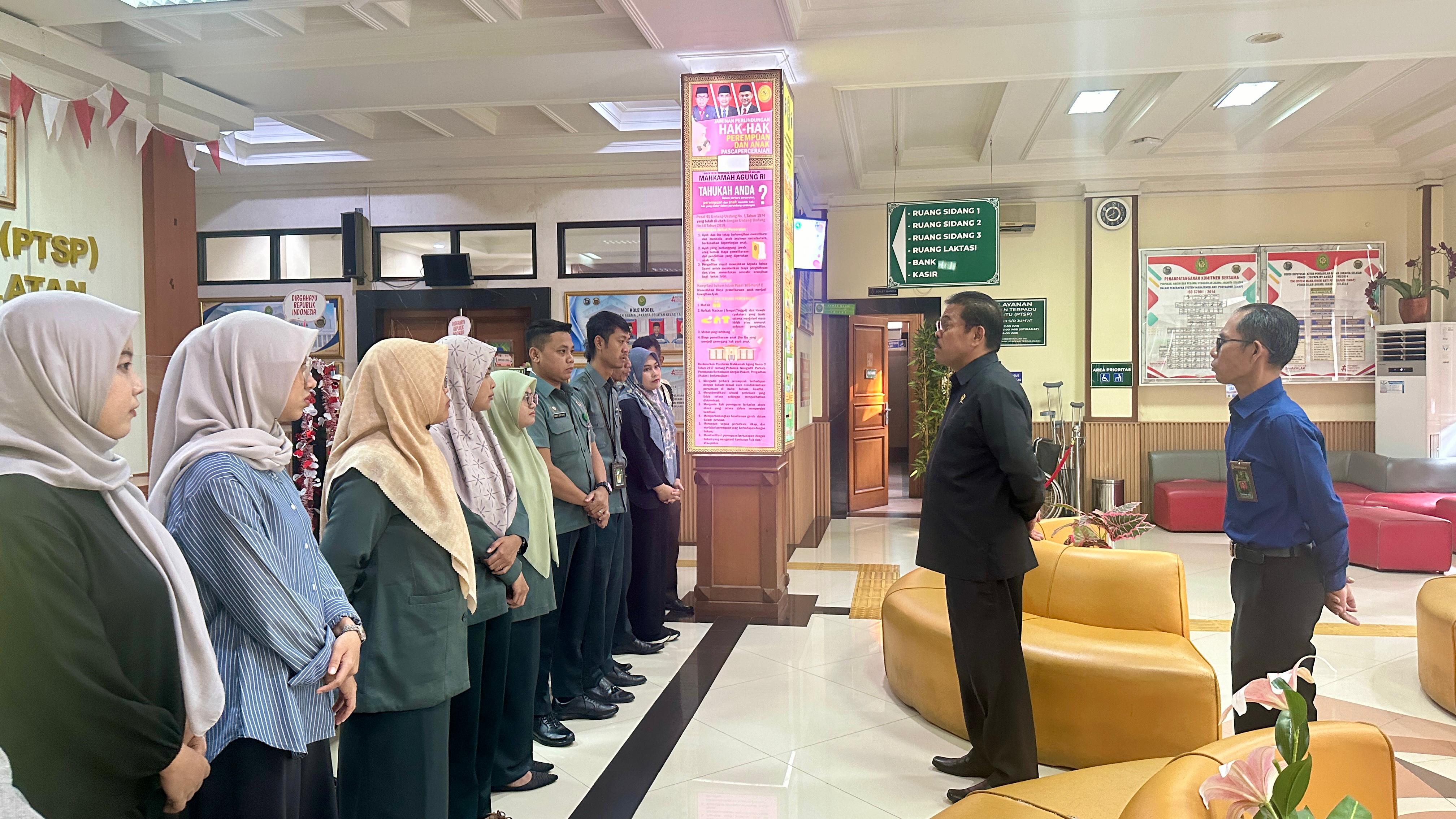 -(Rabu, 21 Agustus 2024)- Pengadilan Agama Jakarta Selatan mengadakan briefing pagi di Pelayanan Terpadu Satu Pintu (PTSP) yang dihadiri oleh petugas pelayanan dan posbakum. Briefing ini dipimpin langsung oleh Wakil Ketua PA Jakarta Selatan Bapak Dr.Sultan. S.Ag., S.H., M.H. didampingi oleh Panitera Muda Permohonan Bapak Hamdani, S.H.I. Pada briefing tersebut, Wakil Ketua PA Jakarta Selatan menyampaikan bahwa setiap kendala yang ada dibagian pelayanan perlu segera dicarikan solusi agar tidak menghambat proses pelayanan kepada pihak berperkara. Selanjutnya beliau menghimbau kepada seluruh petugas untuk terus mπeningkatkan pelayanan dan menjaga integritas untuk mewujudkan serta menjaga konsistensi penerapan SMAP di Pengadilan Agama Jakarta Selatan