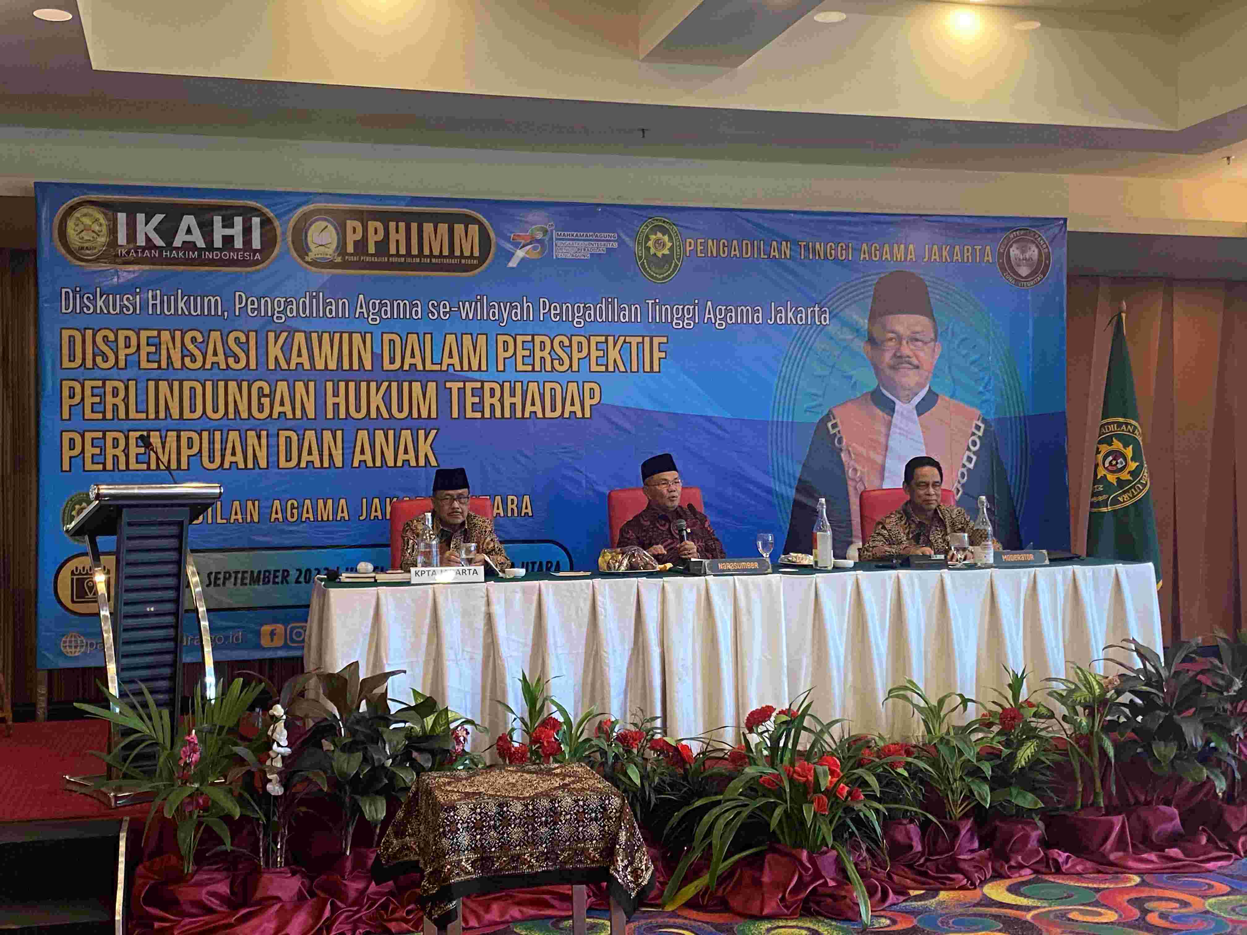 Ketua Pengadilan Agama Jakarta Selatan Dr. H. Muslikin, M.H., Wakil Ketua, Hakim dan Panitera Pengadilan Agama Jakarta Selatan menghadiri Diskusi Hukum yang bertempat di Hotel Sunlake, Jakarta Utara. Tema Diskusi Hukum “Dispensasi Kawin Dalam Perspektif Perlindungan Hukum Terhadap Perempuan dan Anak” narasumber oleh Y.M. Ketua Kamar Agama Mahkamah Agung RI Prof. Dr. Drs. H. Amran Suadi, S.H., M.Hum., M.M. Diskusi hukum diselenggarakan oleh Pengadilan Agama Jakarta Utara bekerjasama dengan PPHIMM dan IKAHI Pengadilan Tinggi Agama Jakarta.