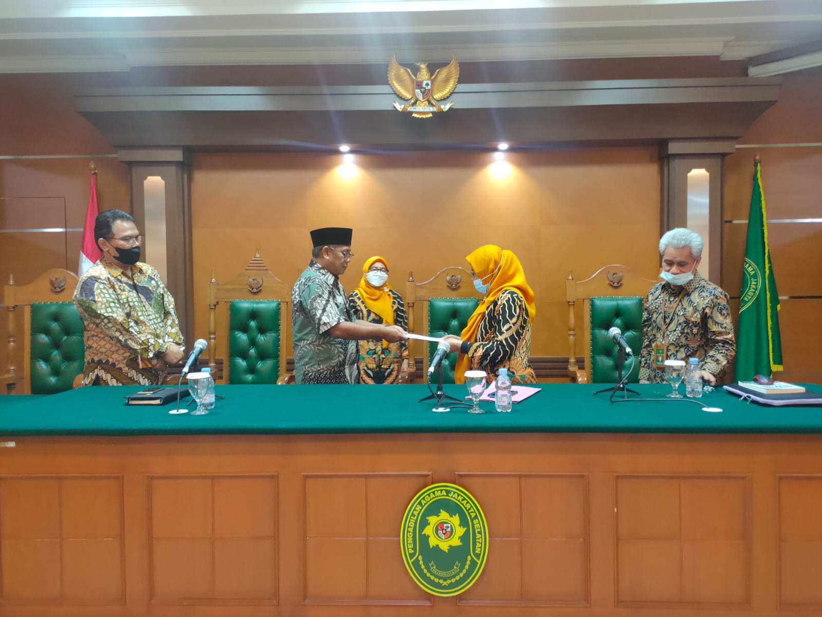 Kamis (19/11/21), Pengadilan Tinggi Agama DKI Jakarta yang diwakili oleh Dra. Hj. Kamariah, S.H., M.H. dan tim mengadakan ekspos hasil pemeriksaan terkait teknis dan yutisial di Pengadilan Agama Jakarta Selatan yang telah dilaksanakan dari tanggal 16-18 November 2021. Adapun hasil pemeriksaan secara keseluruhan, semua bagian sudah baik. Hanya saja agar menjadi lebih baik lagi, ada beberapa hal yang harus diperbaiki, terkait berkas perkara relaas, putusan, penyelesaian perkara, pencabutan gugatan/permohonan, dan lain sebagainya. Drs. Ahmad Nur, M.H. menyampaikan agar temuan yang disampaikan segera akan ditindaklanjuti oleh semua bagian untuk kinerja yang lebih baik lagi. Setelah ekspos temuan selesai dilanjutkan dengan serah terima berkas temuan dari ketua Tim Pemeriksa Pengadilan Tinggi Agama DKI Jakarta kepada PLT Ketua Pengadilan Agama Jakarta Selatan.