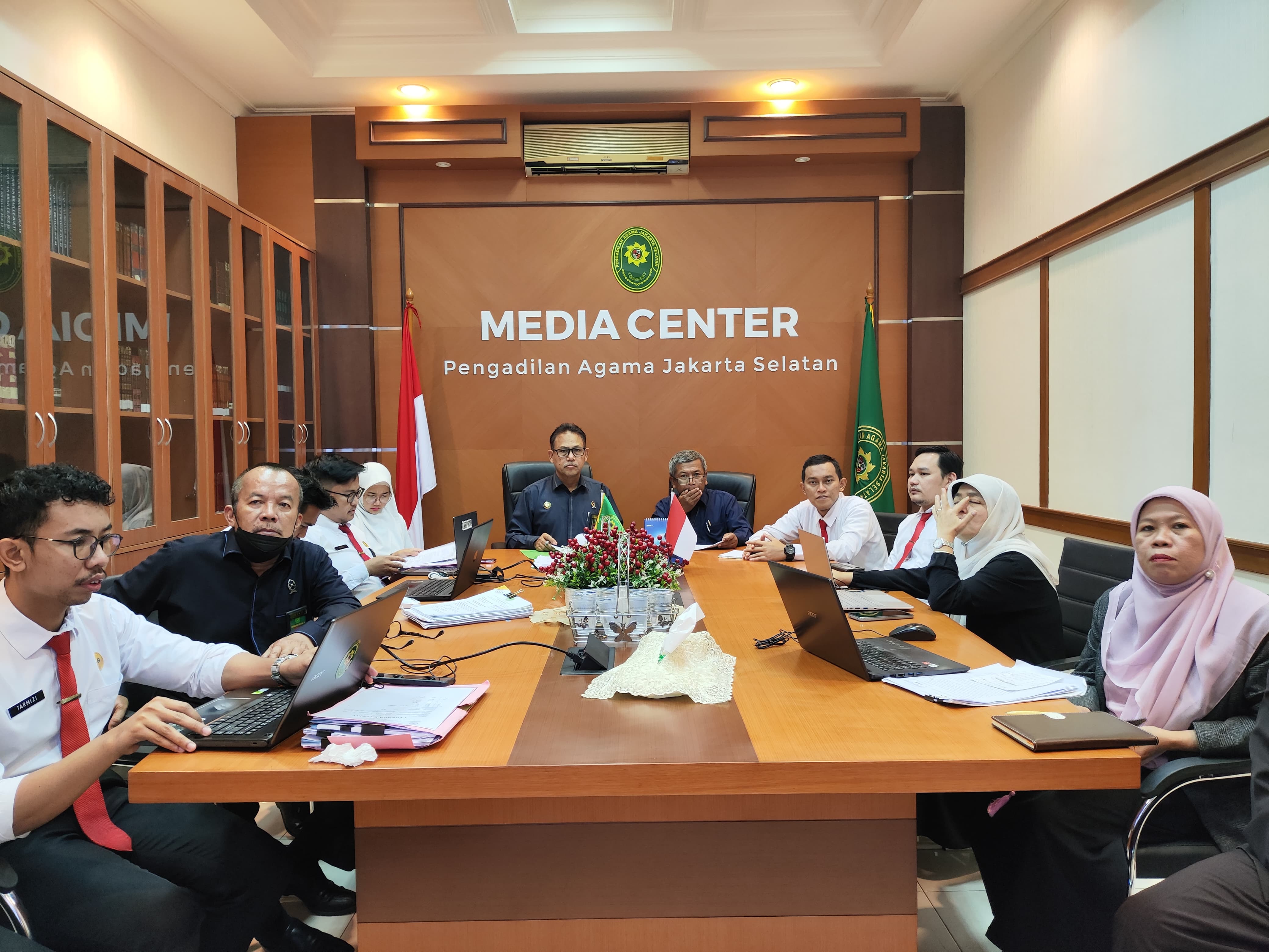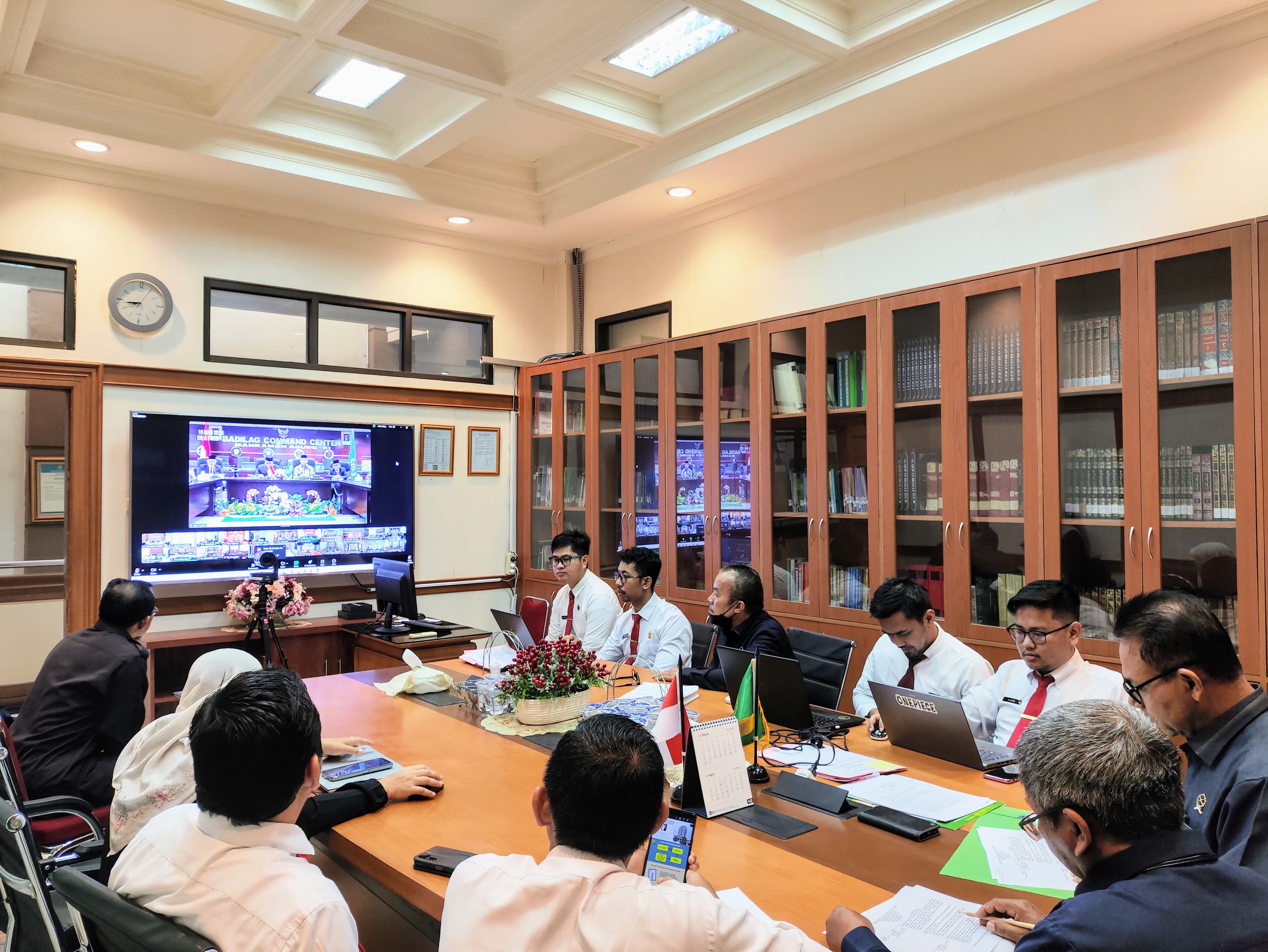 Ketua Pengadilan Agama Jakarta Selatan, Drs. H. Juwaini, S.H., M.H. bersama dengan para Hakim, Panitera dan calon Hakim magang ikuti Webinar Kaum Rentan Berhadapan dengan Hukum yang dilaksanakan secara daring melalui zoom meeting
