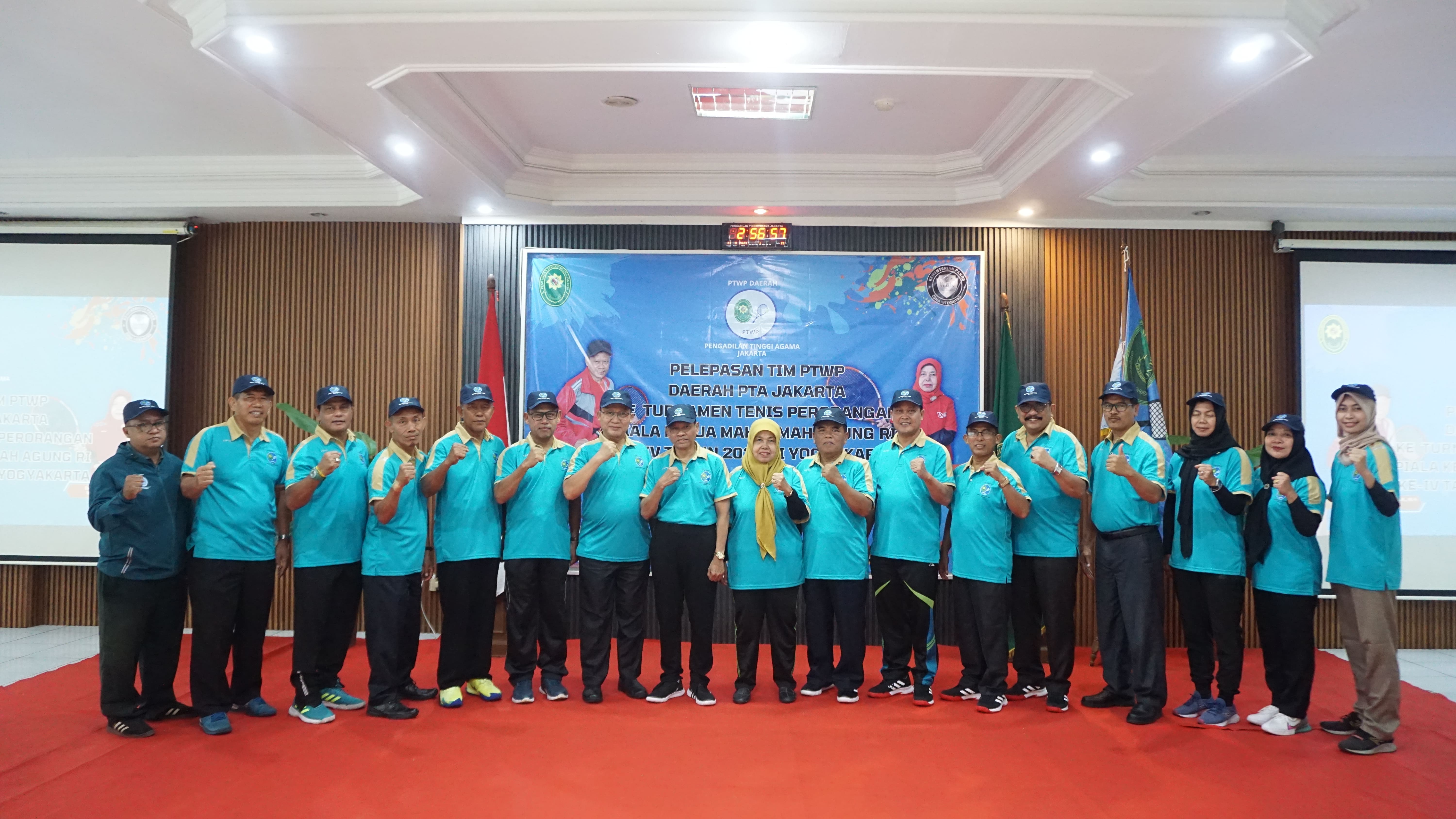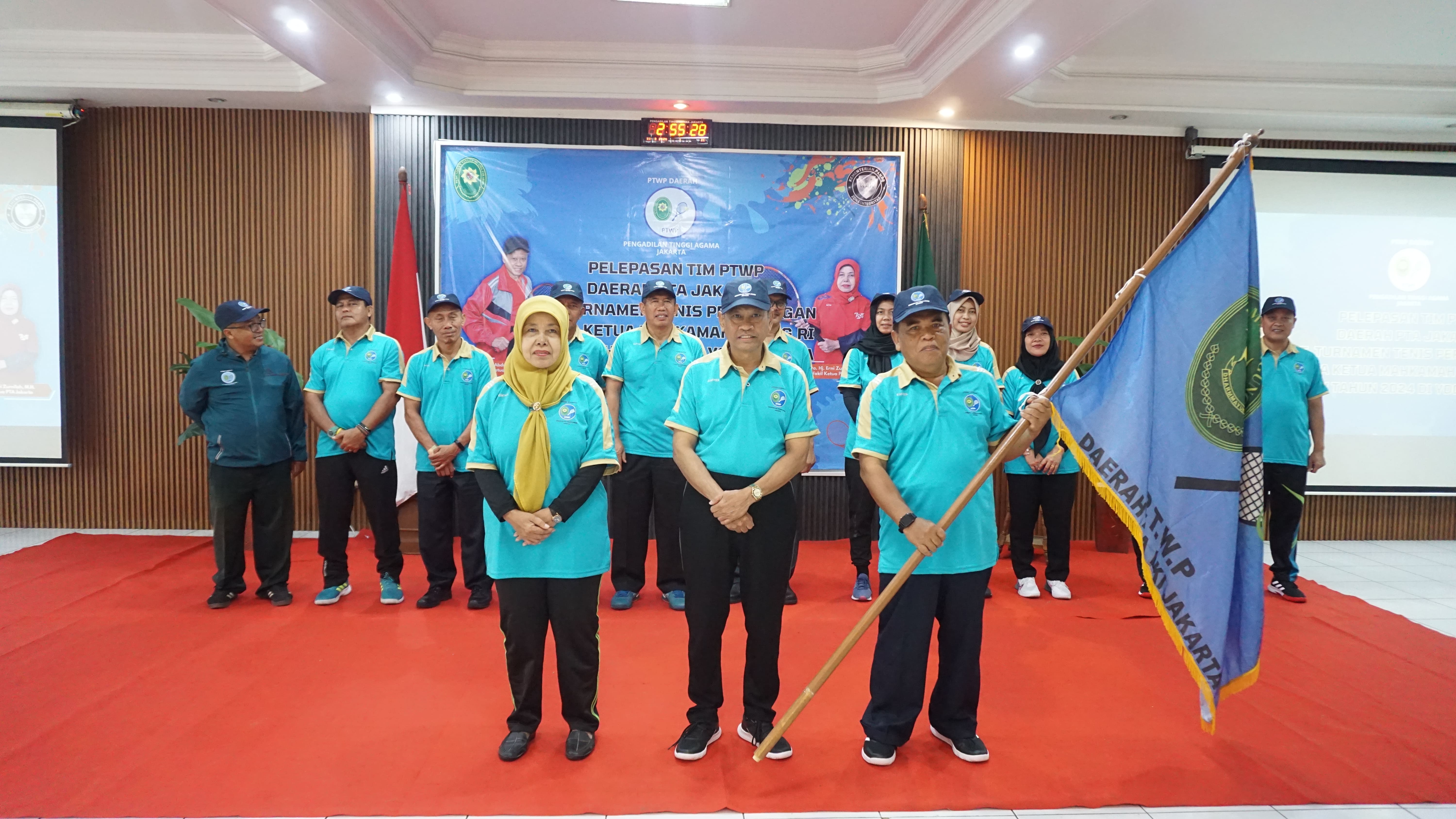 Jakarta Selatan – 11 September 2024 Bertempat di Aula Pengadilan Tinggi Agama (PTA) Jakarta, Ketua Pengadilan Agama Jakarta Selatan Drs. H. Juwaini. S.H,. M.H. mengikuti acara pelepasan kontingen peserta tim PTWP PTA Jakarta yang akan bertanding dalam rangka pelaksanaan Turnamen Tenis Perorangan Piala Ketua Mahkamah Agung RI Ke-IV dan Kongres PTWP Ke-XIX Tahun 2024 di Yogyakarta oleh Ketua PTA Jakarta Dr. Drs. H. Muh Abduh Sulaeman, S.H., M.H. Dalam sambutanya, beliau menyampaikan harapannya agar para atlet dapat tampil maksimal dan menjunjung tinggi sportivitas. Acara ini turut dihadiri oleh jajaran pimpinan, pegawai, serta atlet tenis PTA Jakarta. Turnamen Piala Ketua Mahkamah Agung RI Ke-IV rencananya akan berlangsung di Yogyakarta tanggal 13 September -16 September 2024. Kompetisi ini diikuti oleh perwakilan dari berbagai peradilan di bawah Mahkamah Agung RI, diantaranya pengadilan tinggi, pengadilan agama, pengadilan negeri, pengadilan militer dan pengadilan tata usaha negara dari seluruh Indonesia, dengan tujuan dapat mempererat hubungan antar peradilan serta menumbuhkan semangat kebersamaan dan kompetisi yang sehat di antara peserta..