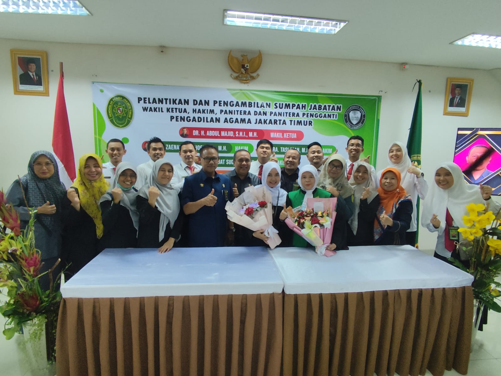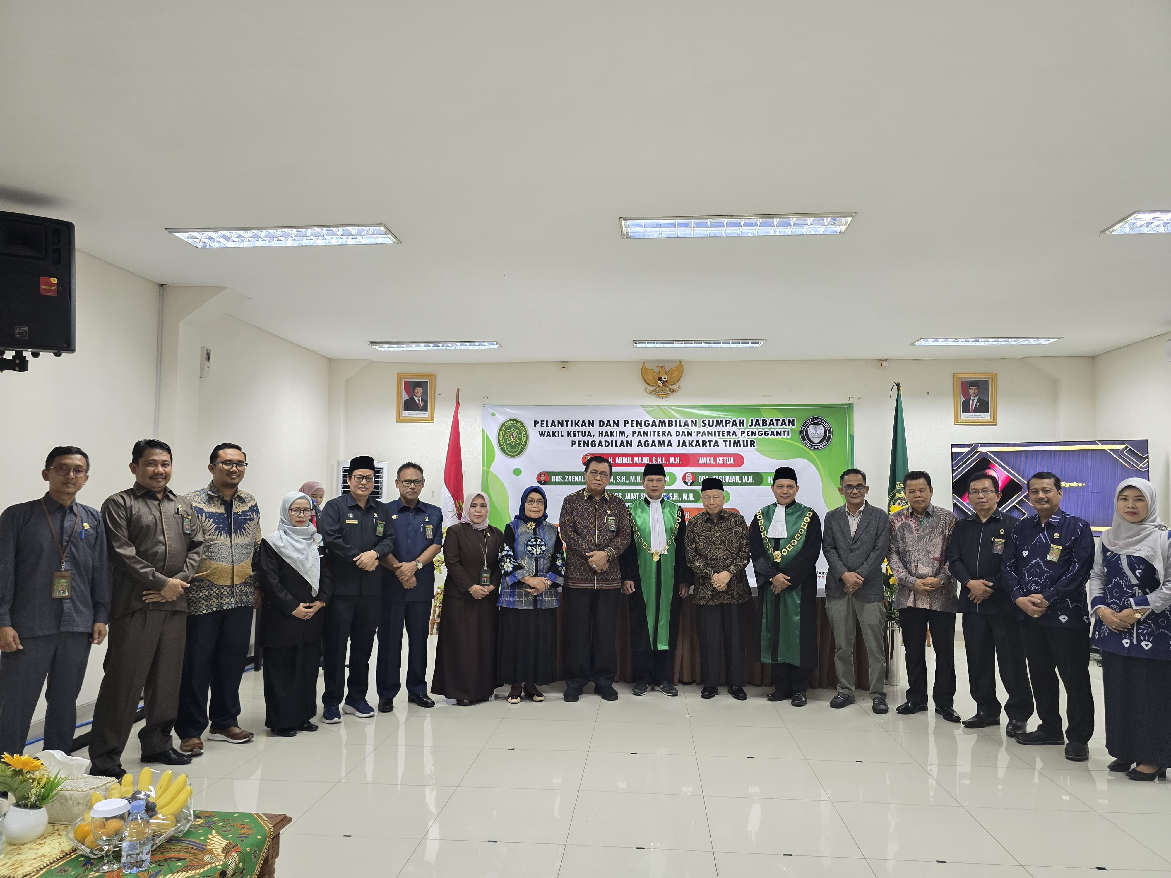 Ketua Pengadilan Agama Jakarta Selatan Hadiri Acara Pelantikan Wakil Ketua, Hakim, Panitera Pengganti Pengadilan Agama Jakarta Timur Bertempat di Ruang Aula Pengadilan Agama Jakarta Timur, telah dilaksanakan pelantikan Hakim dan Panitera Pengganti dari Pengadilan Agama Jakarta Selatan yang dimutasi ke Pengadilan Agama Jakarta Timur. Acara ini dihadiri oleh Ketua Pengadilan Agama Jakarta Selatan didampingi oleh Hakim, Panitera Pengganti, Jurusita dan Cakim PA JS. Segenap Keluarga Besar pengadilan Agama Jakarta Selatan mengucapkan “Selamat dan Sukses ditempat yang baru. Semoga Allah SWT senantiasa melimpahkan kekuatan, kesehatan, keberkahan, sehingga dapat mengemban tugas yang baru dengan Amanah”. - PAJS Integritas Ikhlas Tuntas -