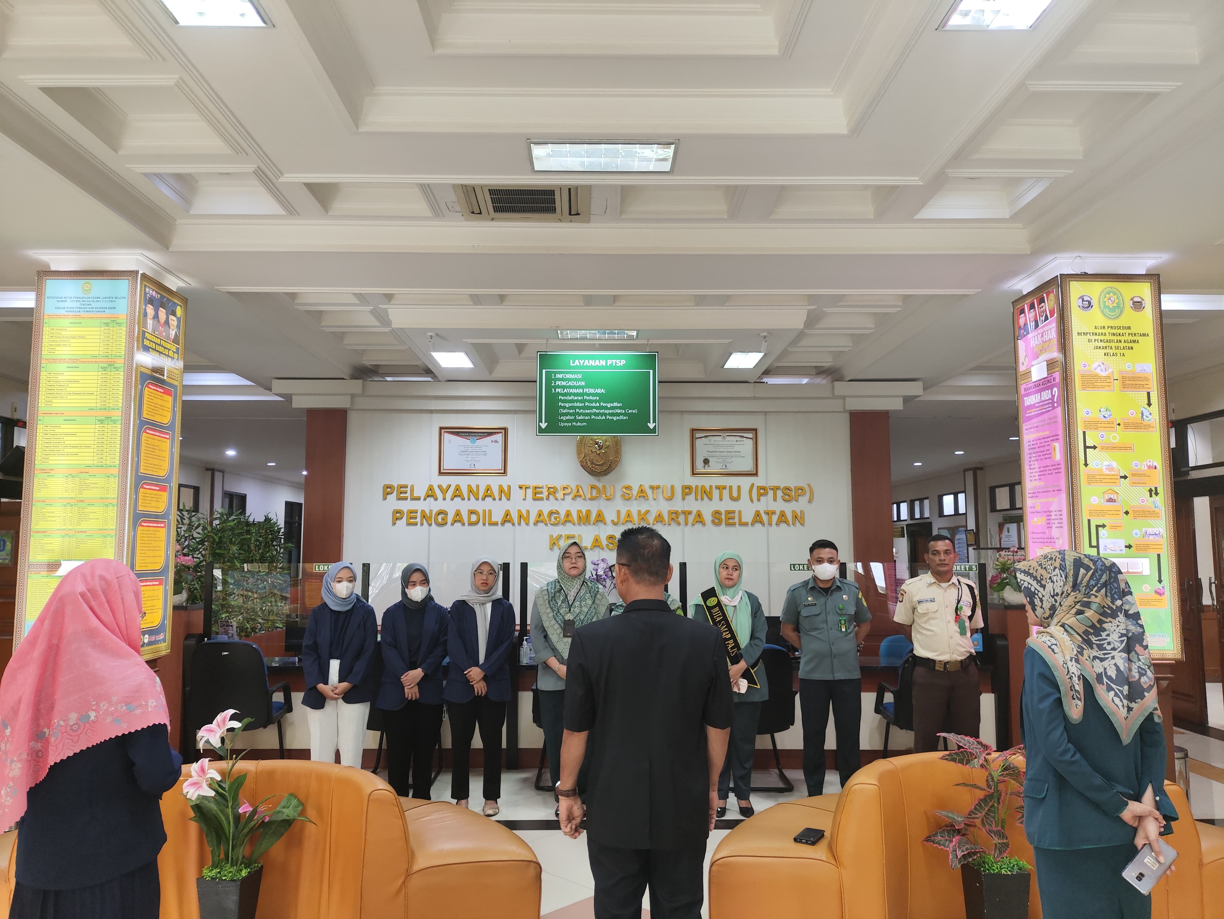 Ketua Pengadilan Agama Jakarta Selatan Bapak Drs. H. Juwaini. S.H,. M.H. didampingi oleh Panitera Muda Hukum Ibu Etik Korniawati, S.H., M.H. dan Kasubbag Umum & Keuangan Ibu Lian Merilan, S.E. kembali mengadakan briefing pagi di Pelayanan Terpadu Satu Pintu (PTSP) Dalam Pembinaannya, Ketua Pengadilan Agama Jakarta Selatan menyampaikan beberapa poin tentang optimalisasi e-court diantaranya : - Publikasi e-Court agar dilaksanakan secara massive dan diutamakan perkara volunteer\ - Pada triwulan ke empat ini, kita harus bisa mengejar target perkara e-Court sebesar 50% dari total perkara setahun - Pihak non pengacara agar diarahkan menggunakan e-Court - Pendaftaran e-Court bisa dilakukan dari rumah atau dibantu di pengadilan, termasuk posbakum sehingga terjadi efisiensi waktu dan biaya - Semua perkara volunteer harus terdaftar secara e-Courtd an diupayakan dengan perkara gugatan. Jika ada pihak yg tidak mau mendaftarkan secara ecourt, maka pihak diminta membuat pernyataan tidak bersedia mendaftarkan secara ecourt - Dihimbau kepada duta SMAP merangkap sekaligus duta e-Court agar menyampaikan kepada para pihak untuk. melakukan pendaftaran secara e-Court - Posbakum supaya mengarahkan pihak untuk berperkara secara e-Court, jika terdapat kendala harap segera dikoordinasikan oleh ketua posbakum dengan pimpinan Pengadilan Agama Jakarta Selatan e-Court digunakan sebagai bentuk pemanfaatan teknologi informasi dalam dunia peradilan yang modern agar pelayanan masyarakat pencari keadilan tidak terganggu, dan kualitas keputusan putusan juga tetap terjaga. Dengan aplikasi e-Court maka pendaftaran, pembayaran, dan pemanggilan perkara dilakukan secara daring. - PAJS Integritas Ikhlas Tuntas –