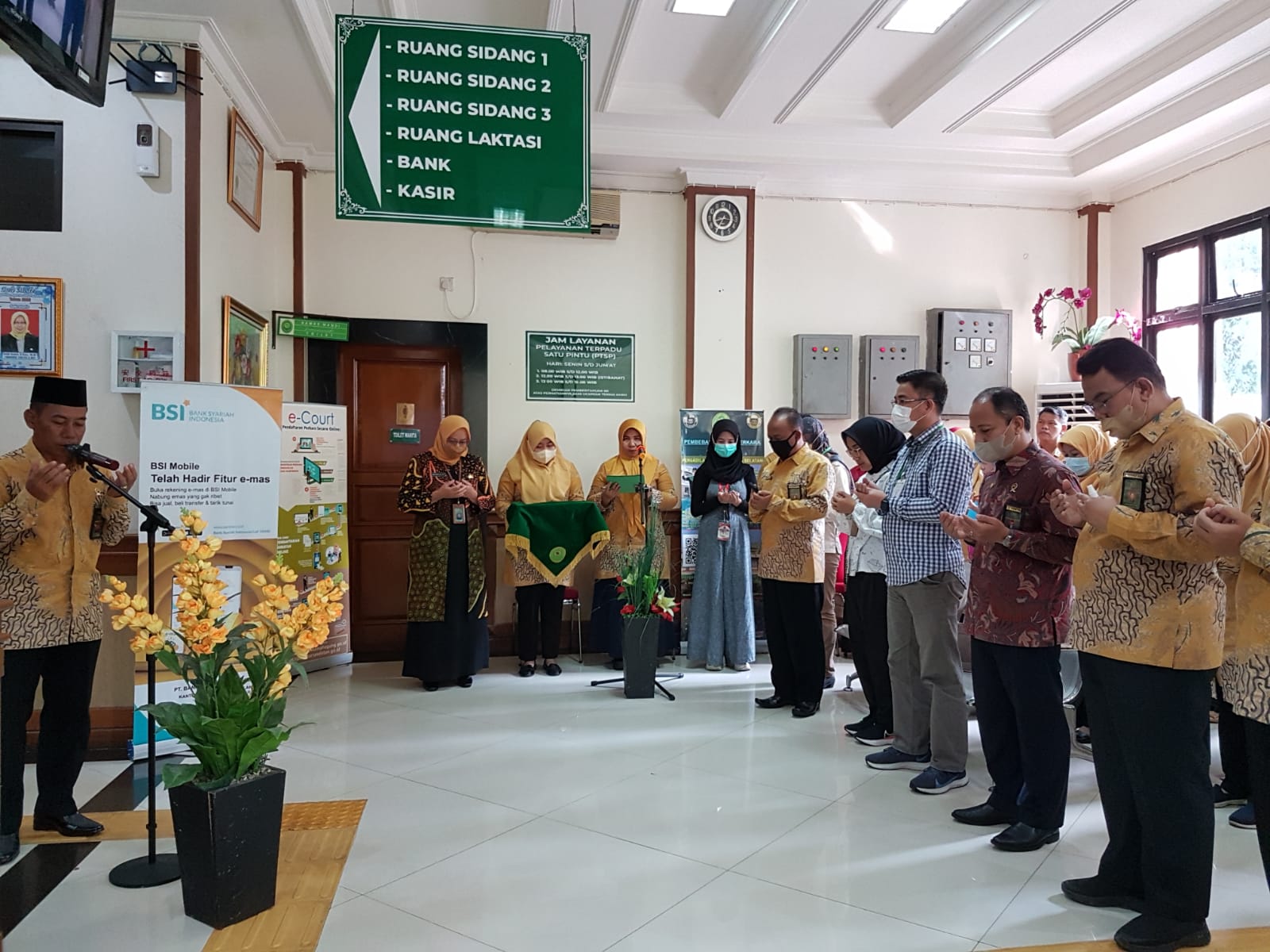 Acara ini dihadiri oleh Ketua Pengadilan Agama Jakarta Selatan Dr. H. Muslikin, M. H., Wakil Ketua Pengadilan Agama Jakarta Selatan, Bapak Ibu Hakim, Panitera, Sekteraris serta segenap Pegawai PA Jakarta Selatan, M. Johan Wahyudi selaku Kepala Cabang BSI Kantor Cabang Cilandak II dan tim, serta pengunjung PA Jakarta Selatan selaku pencari keadilan.