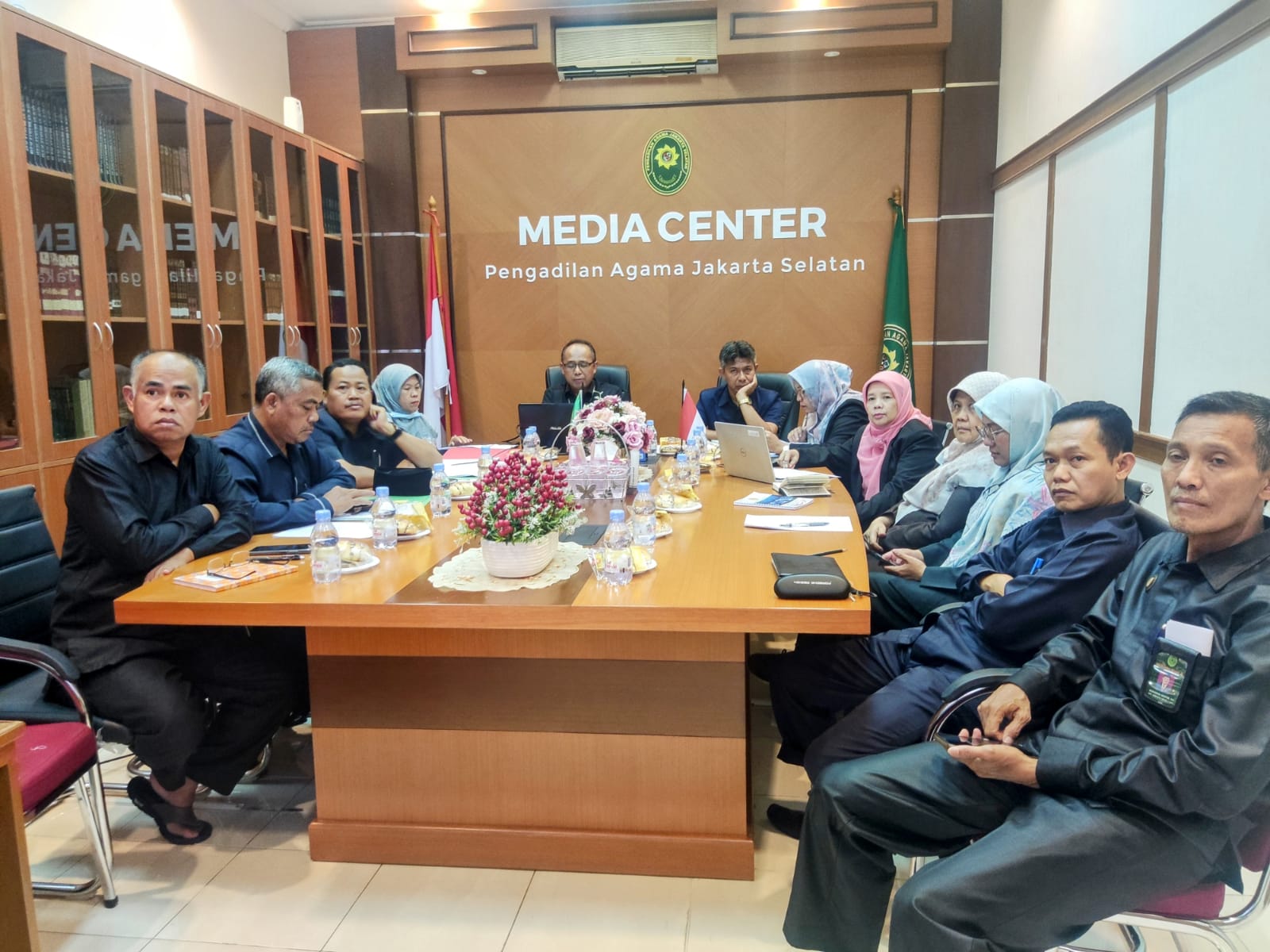 Bertempat di Ruang Media Center Pengadilan Agama Jakarta Selatan, Pimpinan beserta Ketua dan Sekretaris POKJA ZI melaksanakan zoom meeting dengan Badan Pengawasan Mahkamah Agung RI terkait Zona Integritas (ZI). Tim dari Badan Pengawasan Mahkamah Agung RI melakukan Monitoring dan Evaluasi (Monev) terhadap pelaksanaan Zona Integritas (ZI) pada Pengadilan Agama Jakarta Selatan. Tim ingin melihat dan mendengar langsung dari Ketua Pengadilan Agama Jakarta Selatan Dr. H. Muslikin, M.H. terhadap pelaksanaan serta keberlanjutan implementasi Zona Integritas.