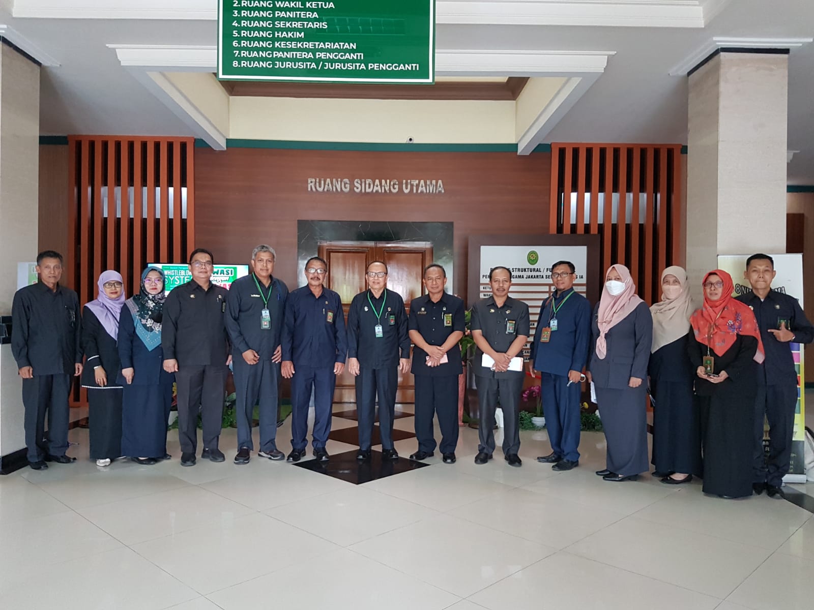 Rombongan disambut dan diterima oleh Ketua PA Jakarta Selatan, Dr. H. Muslikin, M.H., Wakil Ketua, Firdaus, S.Ag., M.H. Panitera, Drs. H. Saiful Bahry,S.H., M.H., Sekretaris, Andi Subhi, S.Sos., M.M., Panitera Muda Hukum, M. Khotib, S.H., M.H., Panitera Muda Gugatan, Hikmayati, S.H., M.H. Panmud Permohonan, Ida Fitriyani, S.H. dan Kasubbag Kepegawaian dan Ortala Yarno, S.H. dan Kepala Sub Bagian Perencanaan, Teknologi Informasi Titi Khotimah, S.H.