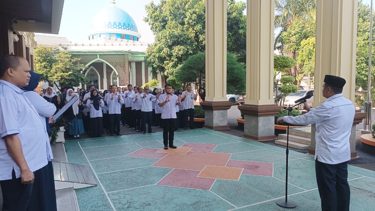 Apel Pagi Pengadilan Agama Jakarta Selatan berlangsung dengan penuh khidmat. Kegiatan yang berlangsung di halaman kantor ini diikuti oleh seluruh pegawai.