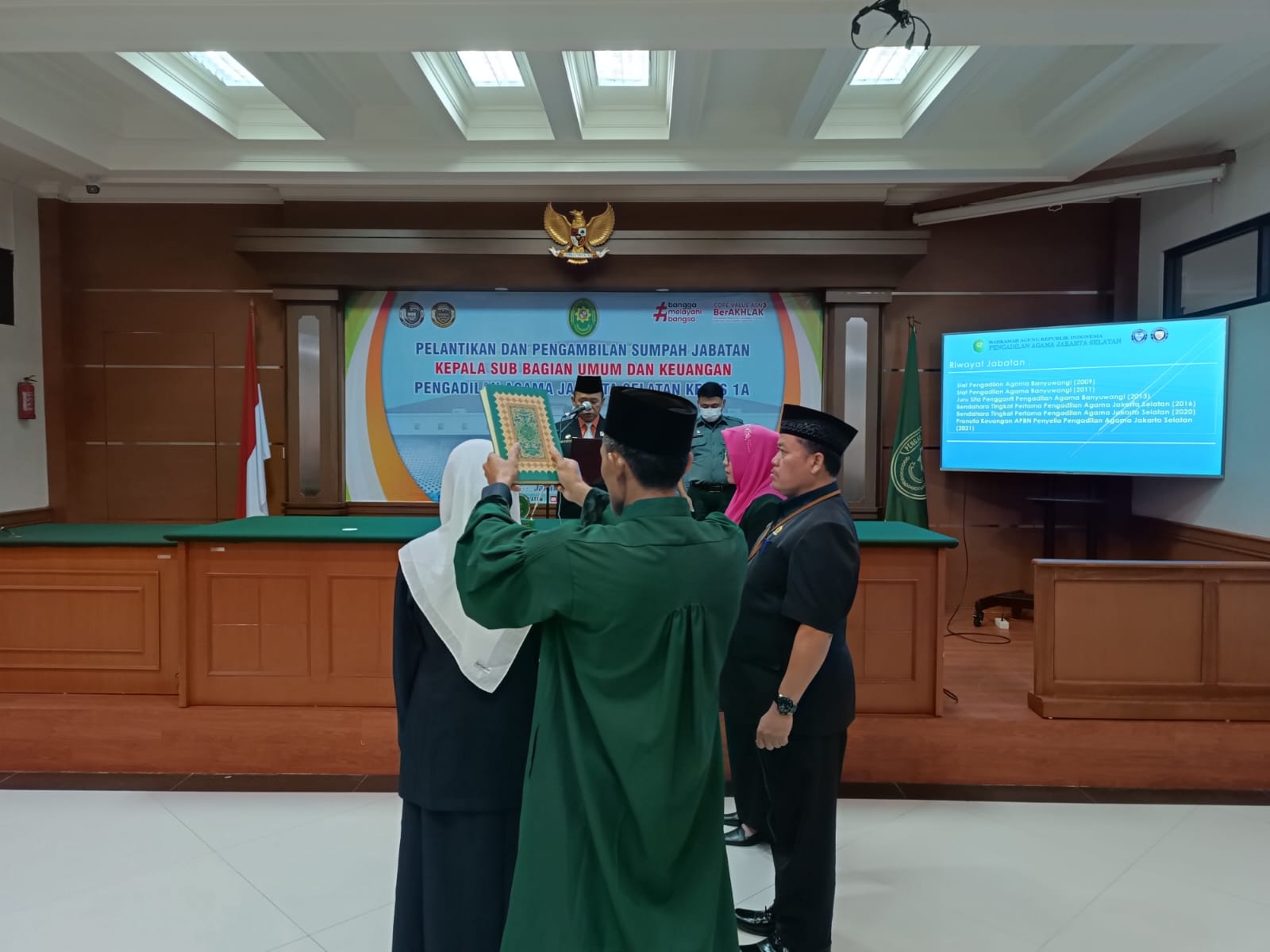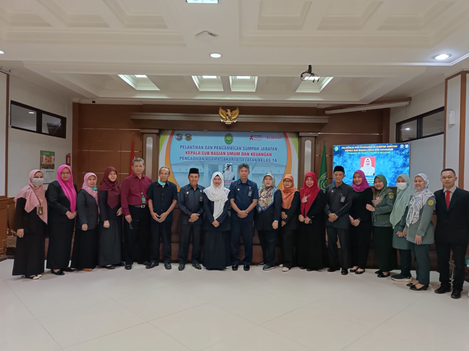 Acara Pelantikan dilaksanakan di Ruang Sidang Utama Pengadilan Agama Jakarta Selatan dan dihadiri oleh Seluruh Aparatur Pengadilan Agama Jakarta Selatan.