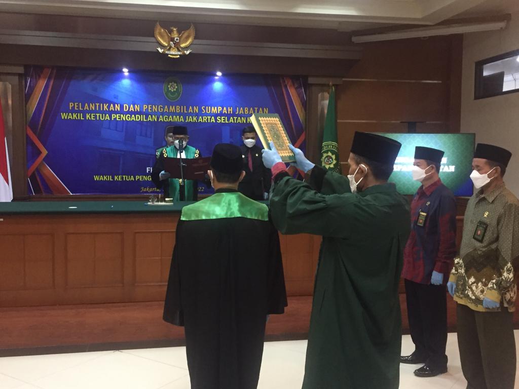 Ketua Pengadilan Agama Jakarta Selatan Drs. Ahmad Nur, M.H. melantik Wakil Ketua Pengadilan Agama Jakarta Selatan. Kegiatan ini merupakan tindak lanjut atas terbitnya Petikan Surat Keputusan Ketua Mahkamah Agung Republik Indonesia Nomor : 36/KMA/SK/I/2022 tanggal 24 Januari 2022, tentang Promosi dan Mutasi Hakim Tinggi, Ketua, Wakil Ketua, dan Hakim Pada Lingkungan Peradilan Agama.