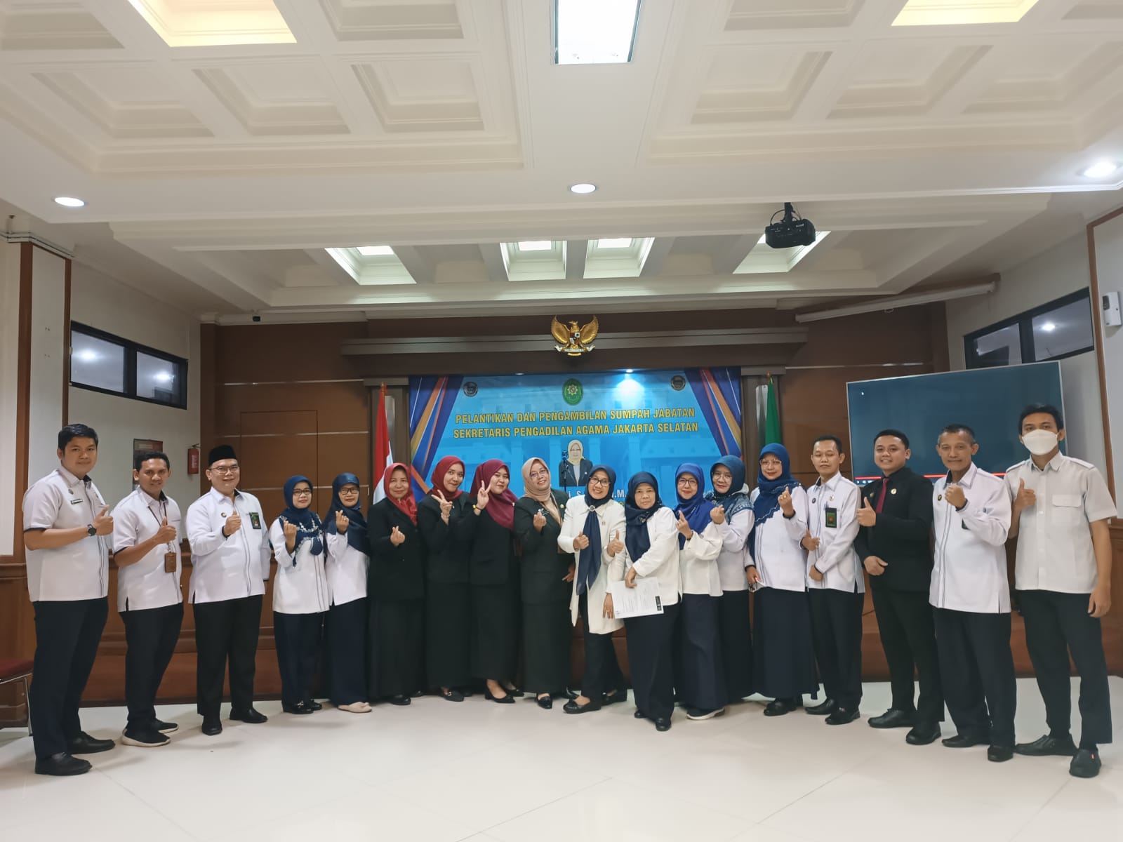 Acara pelantikan dibuka dengan menyanyikan lagu Indonesia Raya dan Hymne Mahkamah Agung, dilanjutkan dengan pembacaan Surat Keputusan Ketua Pengadilan Agama Jakarta Selatan, Setelah itu dilanjutkan Pengambilan Sumpah Jabatan, Penandatanganan Berita Acara Sumpah Pelantikan, serta Pembacaan dan Penandatanganan Pakta Integritas oleh pejabat yang dilantik. Seluruh rangkaian berlangsung dengan khidmat dan lancar. Acara Pelantikan ini dihadiri oleh Wakil Ketua Pengadilan Agama Jakarta Utara, Panitera dan Staff PA Jakarta Utara, Para Hakim PA Jakarta Selatan, Panitera PA Jakarta Selatan, Para Tamu Undangan dan Pegawai PA Jakarta Selatan serta teman teman dari PTA Jakarta dengan tetap menerapkan Protokol Kesehatan.