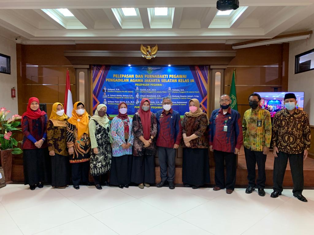 Jumat(22/10/21), Bertempat di ruang sidang utama, Pengadilan Agama Jakarta Selatan mengadakan acara pelepasan pegawai yang promosi/mutasi. Adapun total pegawai yang dilepas tugas dari Pengadilan Agama Jakarta Selatan ialah sebanyak 10 orang diantaranya yaitu, Panitera Muda Gugatan, Panitera Pengganti, Jurusita, dan Jurusita Pengganti, serta salah satu Jurusita yang pensiun. Diharapkan semoga pegawai yang dilepas tugas dari Pengadilan Agama Jakarta Selatan tetap bekerja dengan baik dan selalu meningkatkan kinerjanya di tempat yang baru. Drs. Ahmad Nur, M.H. selaku wakil dari Pengadilan Agama Jakarta Selatan juga mengucapkan terima kasih atas kinerja dan kerja sama yang dibangun selama di Pengadilan Agama Jakarta Selatan. Acara pelepasan ini diakhiri oleh pemberian cinderamata sebagai kenang-kenangan dari Pengadilan Agama Jakarta Selatan.
