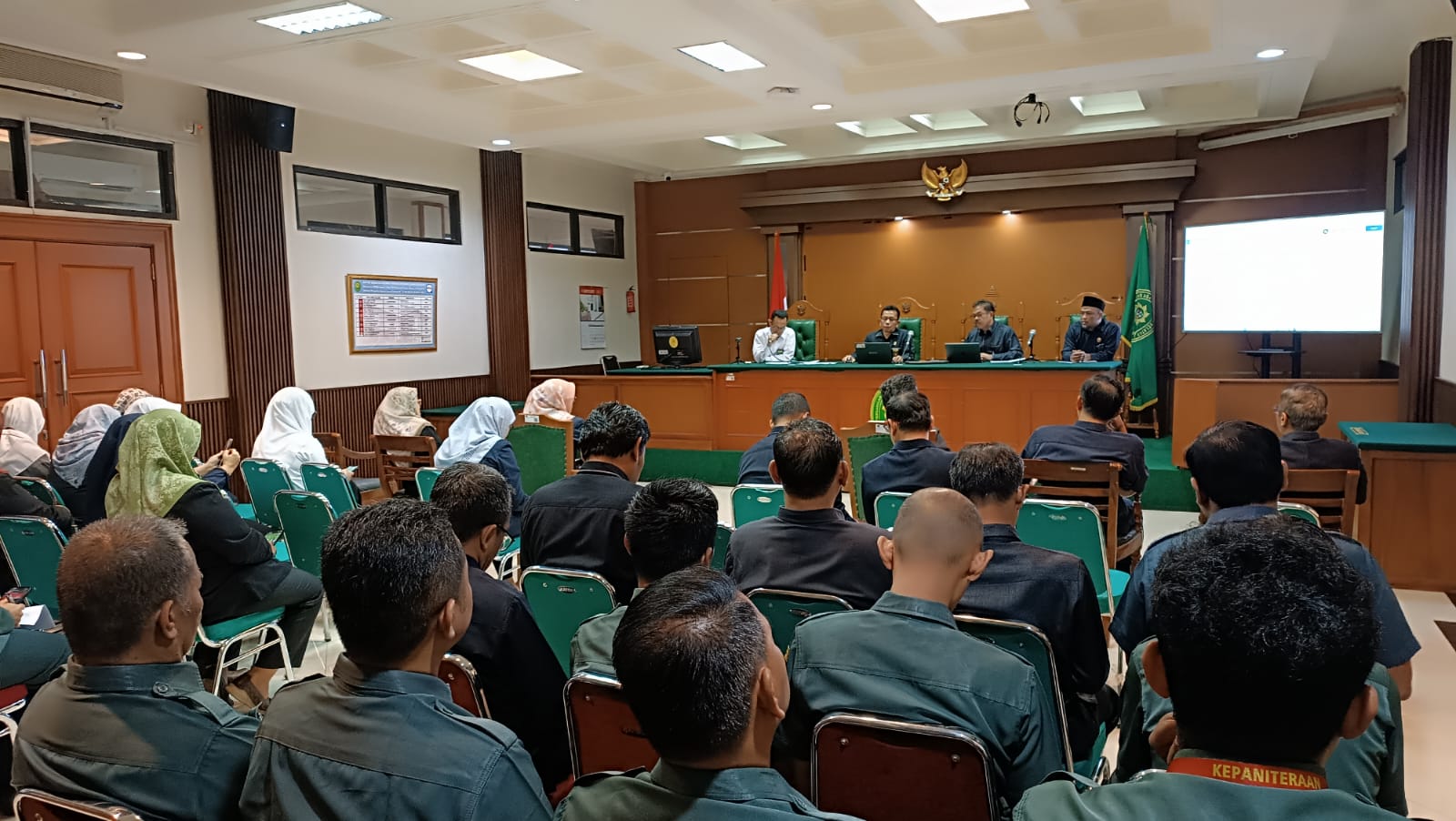 Kegiatan yang berlangsung di Ruang Sidang Utama ini dihadiri oleh seluruh aparatur Pengadilan Agama Jakarta Selatan, termasuk Ketua Pengadilan Ruslan, S.Ag., S.H., M.H., Wakil Ketua Dr. Sultan, S.Ag., S.H., M.H., Panitera, Plt. Sekretaris dan seluruh pegawai.