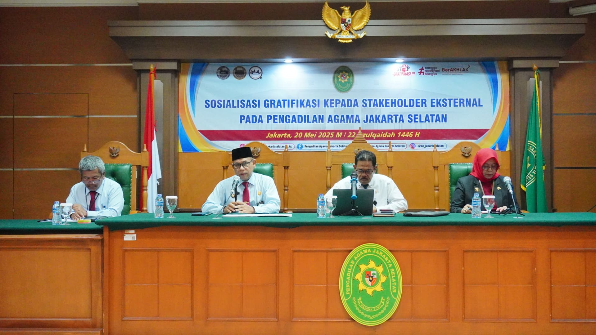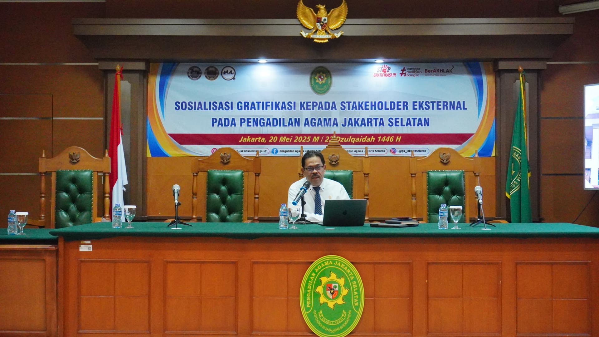 Pengadilan Agama Jakarta Selatan menggelar kegiatan sosialisasi anti-gratifikasi yang ditujukan kepada para stakeholder eksternal. Bertempat di ruang sidang utaman, kegiatan ini dihadiri oleh berbagai mitra kerja, para mediator dan perwakilan Advokat.