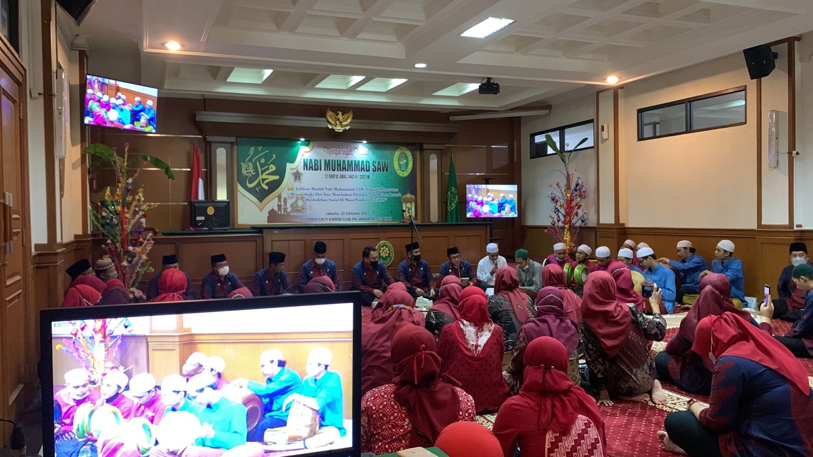 Jumat(22/10/2021), Pengadilan Agama Jakarta mengadakan acara peringatan Maulid Nabi Muhammad SAW 12 Rabiul Awal 1443 H yang bertepatan dengan tanggal 19 Oktober 2021 sebelumnya. Adapun acara Maulid ini ialah bagian dari kegiatan Ibu-ibu Dharmayukti Karini Pengadilan Agama Jakarta Selatan, dihadiri juga oleh seluruh pegawai dengan kegiatan acara yaitu bersalawat, dan mendengar ceramah hikmah tentang Maulid Nabi Muhammad SAW. Pengadilan Agama Jakarta Selatan juga menghadirkan marawis group guna memeriahkan acara kali ini. Dengan tetap menerapkan social distancing dalam rangka mencegah Covid-19, acara ini dilaksanakan dengan aman dan tertib.