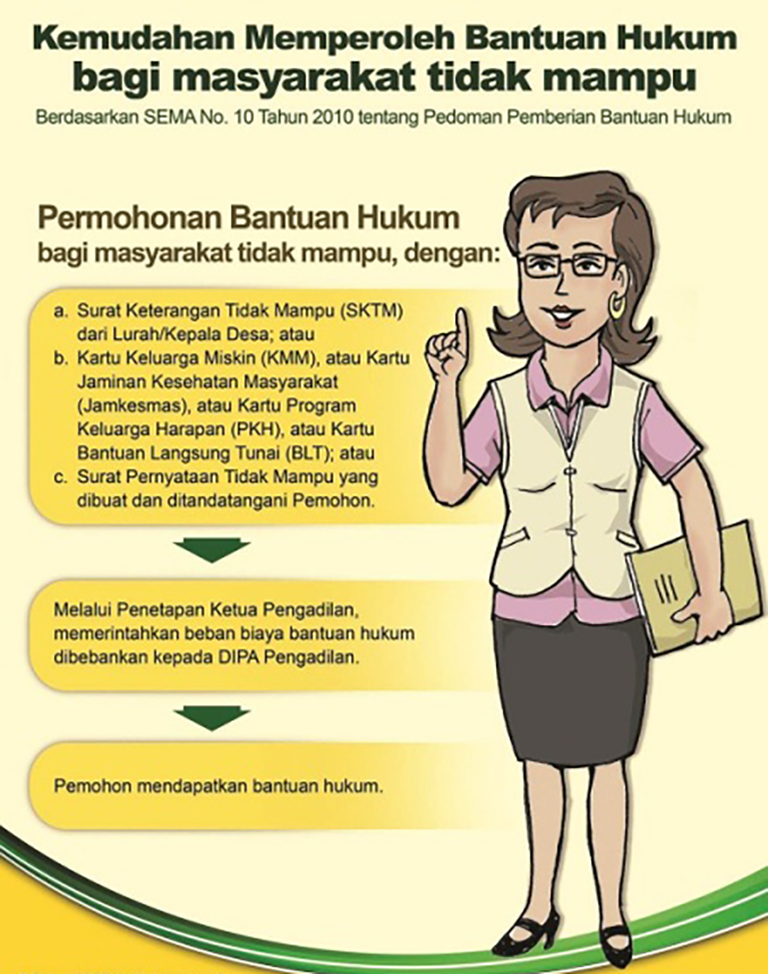 Anggota masyarakat yang tidak mampu secara ekonomis dapat mengajukan gugatan/permohonan berperkara secara cuma-cuma (prodeo) dengan syarat melampirkan: