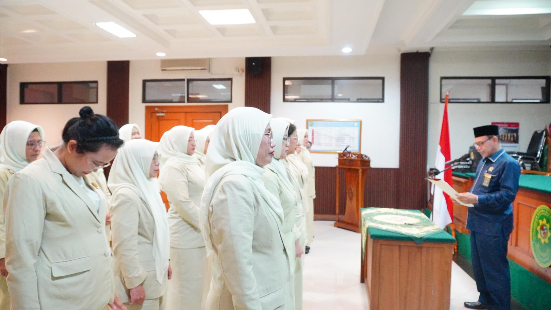 Selanjutnya, acara dilanjutkan dengan prosesi Pelantikan Pengurus Dharmayukti Karini Cabang Jakarta Selatan masa bakti 2025-2028. Pelantikan dilakukan oleh Bapak Drs. H. Juwaini, S.H., M.H., yang mengambil sumpah jabatan pengurus baru yang siap menjalankan tugas dan tanggung jawab mereka dalam mengembangkan Dharmayukti Karini di wilayah Jakarta Selatan. Acara ini dihadiri oleh para anggota istimewa yang memberikan dukungan penuh kepada pengurus yang baru dilantik.