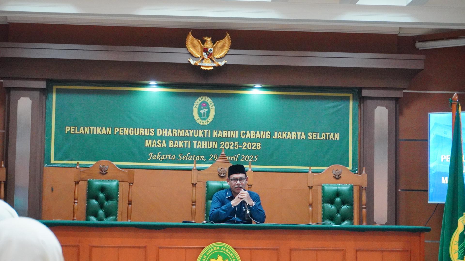 Acara dimulai dengan sambutan dari Pelindung Dharmayukti Karini Cabang Jakarta Selatan, Bapak Drs. H. Juwaini, S.H., M.H., yang memberikan arahan dan bimbingan kepada seluruh peserta. Dalam sambutannya, beliau menyampaikan pentingnya peran Dharmayukti Karini dalam mendukung tugas-tugas pengadilan agama dan memberikan kontribusi positif bagi masyarakat.