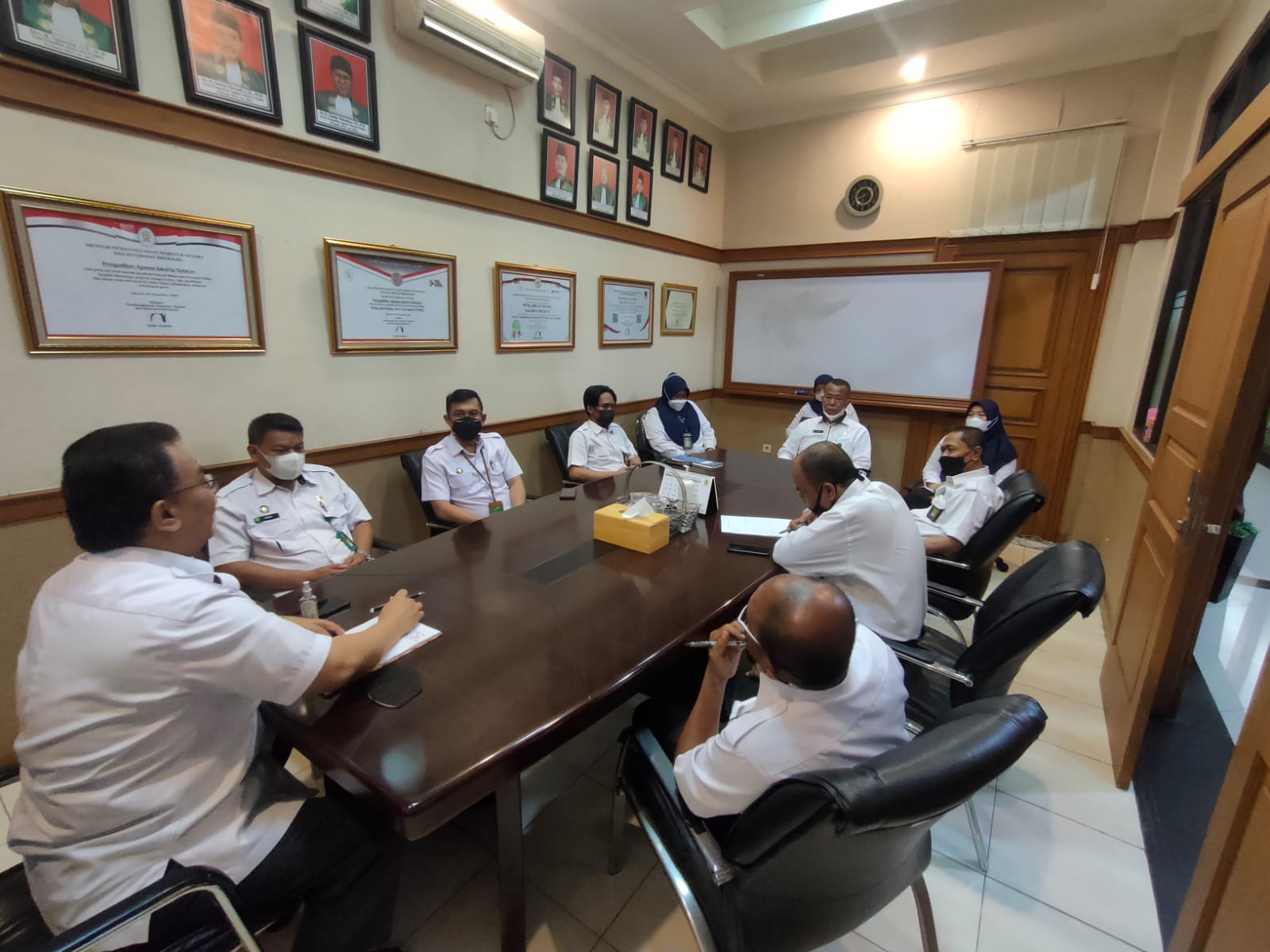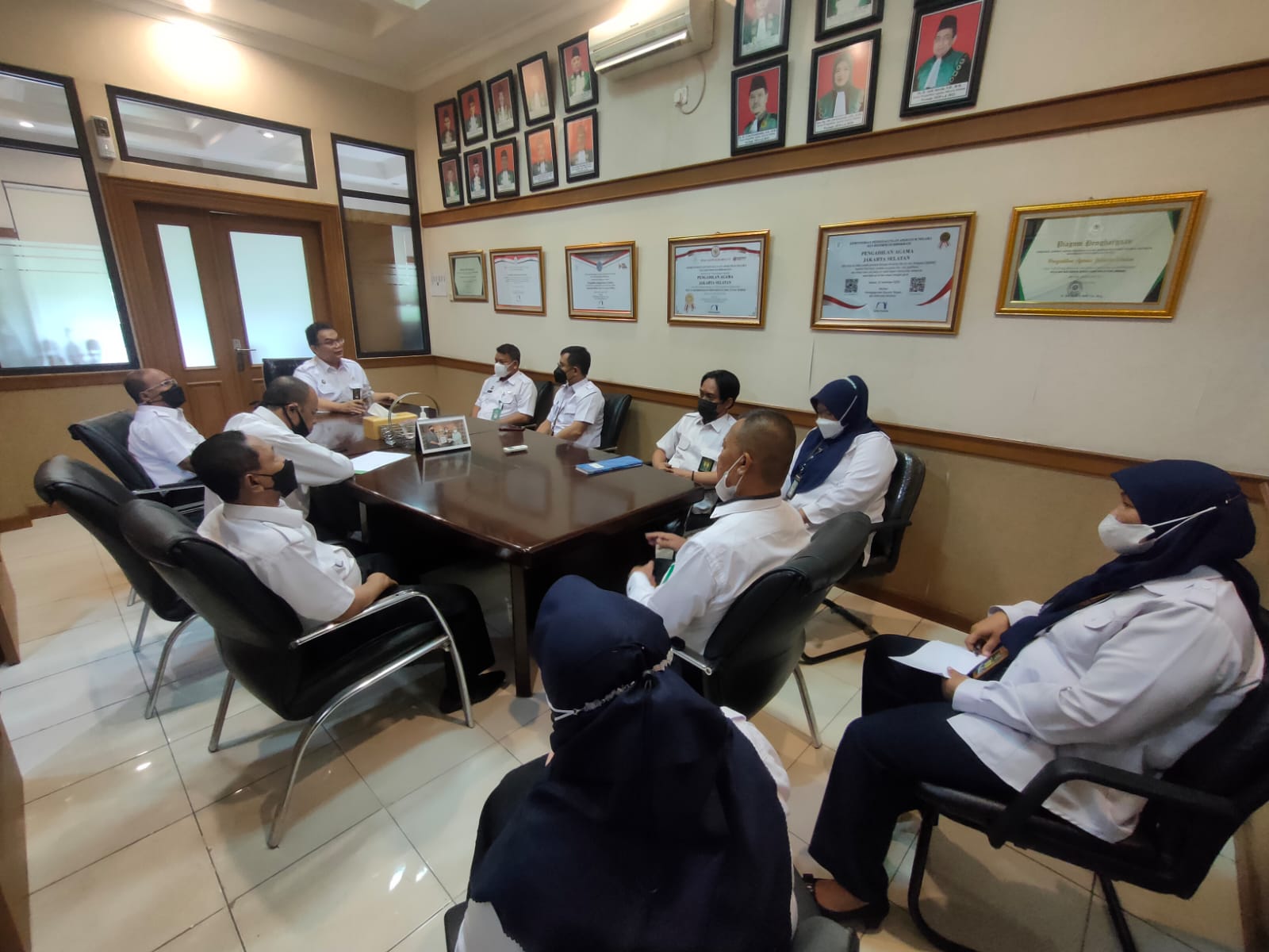 Senin (15/11/2021), Panitera Pengadilan Agama Jakarta Selatan, bertempat di ruang rapat pimpinan mengadakan rapat dengan para Jurusita dan Jurusita Pengganti terkait koordinasi mengenai kinerja jurusita dan jurusita pengganti Pengadilan Agama Jakarta Selatan. Pada rapat koordinasi ini, setiap kendala yang terjadi selama bekerja disampaikan agar kedepannya dapat diperbaiki dan ditindaklanjuti. Diharapkan seluruh pegawai terutama bagian kepaniteraan terus meningkatkan kinerja dalam melayani masyarakat pencari keadilan.