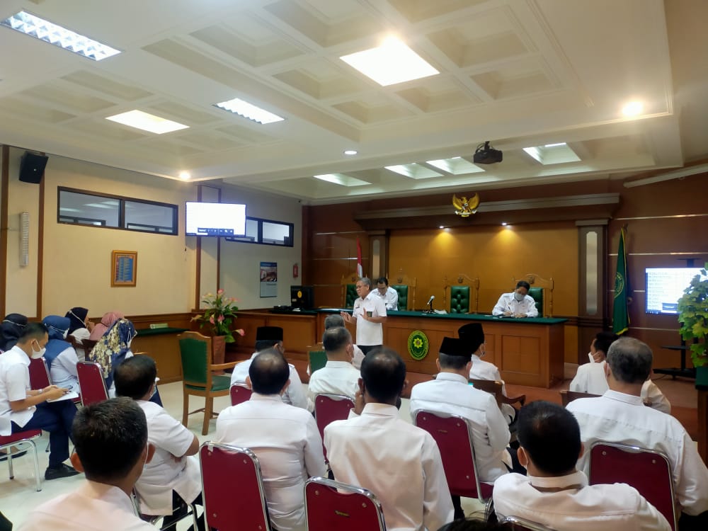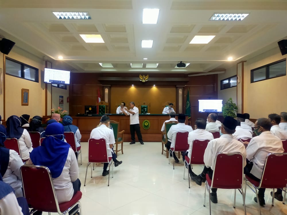 Jakarta Selatan (01/11/21), bertempat di ruang sidang utama, Drs. Ahmad Nur, M.H., selaku PLT Ketua Pengadilan Agama Jakarta Selatan mengadakan rapat seluruh pegawai untuk membahas monitoring dan evaluasi mengenai draft capaian kinerja triwulan III. Dalam rapat ini dibahas mengenai beberapa komponen kinerja yang turun. Baik dari kinerja kesekretariatan, maupun kepaniteraan. Pimpinan Pengadilan Agama Jakarta Selatan berharap agar seluruh pegawai dapat secara bersama-sama memperbaiki serta meningkatkan kinerja dan prestasi yang telah diraih sebelumnya.