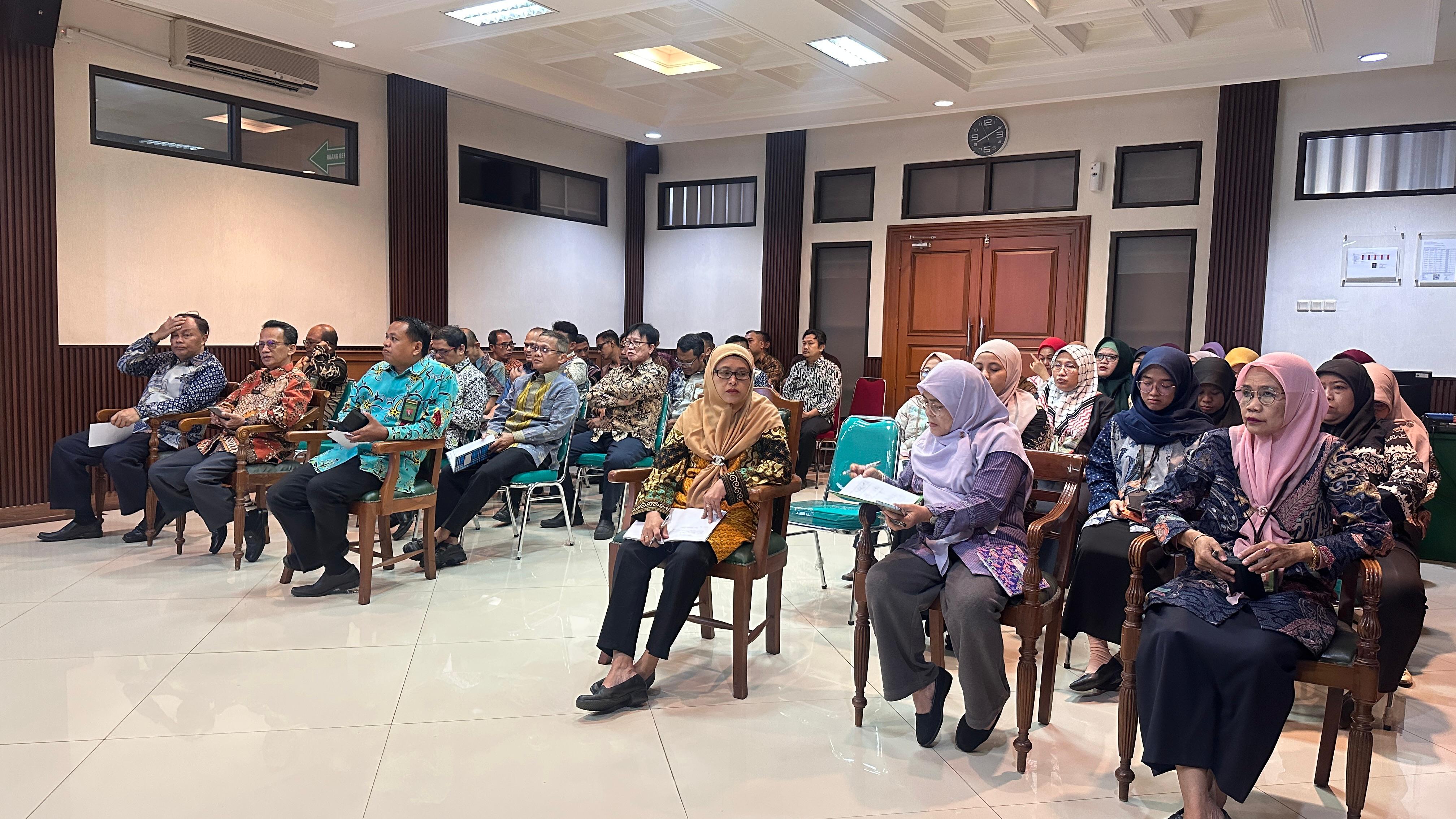 Pengadilan Agama Jakarta Selatan menyelenggarakan rapat pembinaan serta monitoring dan evaluasi (monev) kinerja pada Kamis,28 Agustus 2025 yang bertempat di Ruang Sidang Utama. Kegiatan ini diawali dengan pembukaan oleh Plt. Sekretaris, Yarno, S.H., M., yang menekankan pentingnya sinergi dan kedisiplinan seluruh aparatur dalam meningkatkan kualitas pelayanan peradilan.