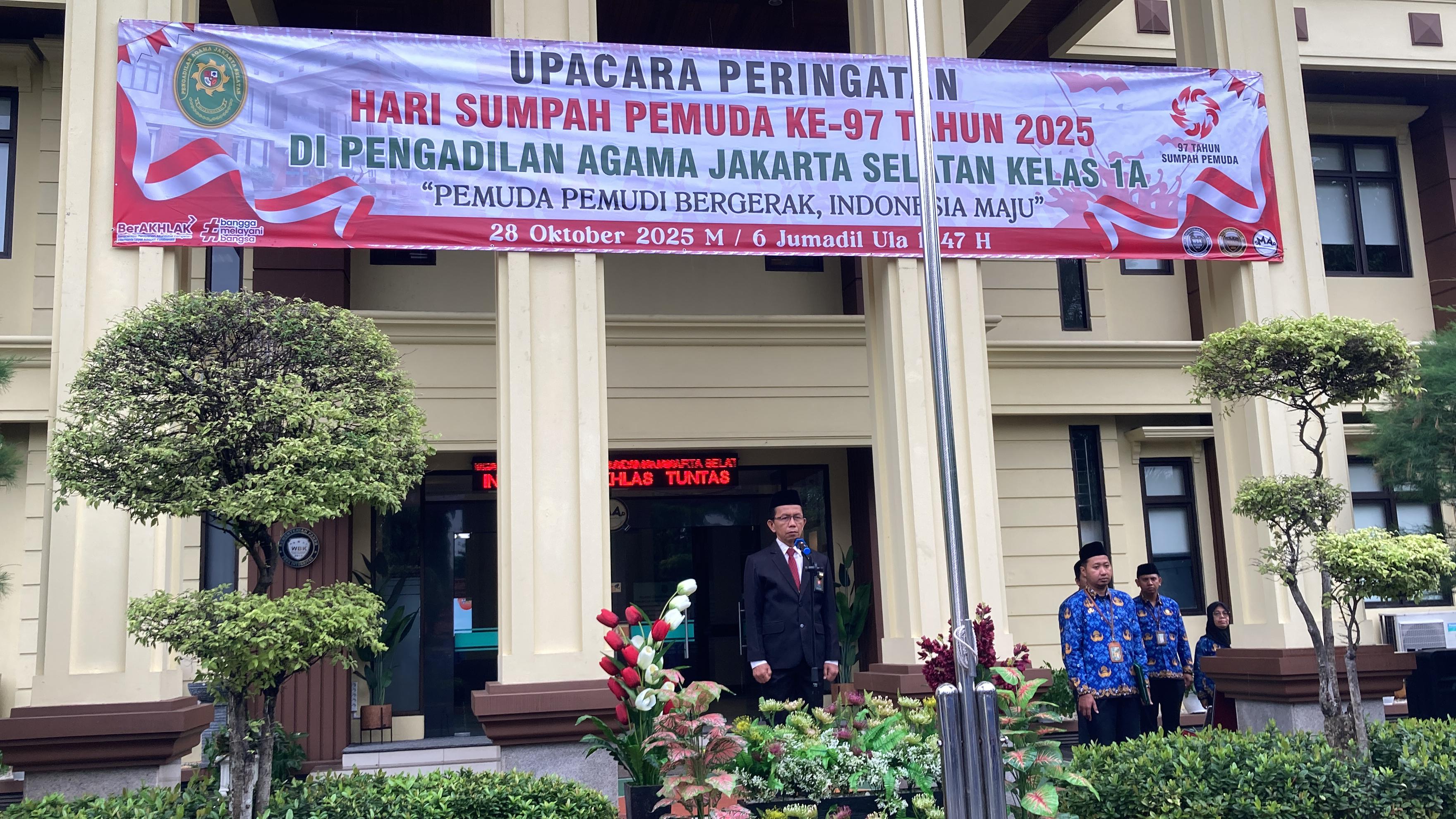 Semangat persatuan dan kebangsaan terasa kuat di halaman Pengadilan Agama Jakarta Selatan pada Senin, 28 Oktober 2025 saat seluruh pegawai mengikuti upacara peringatan Hari Sumpah Pemuda ke-97 tahun 2025 di halaman kantor.