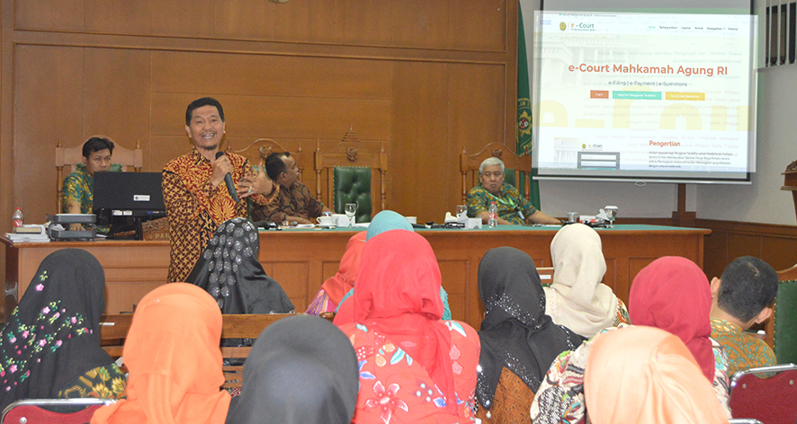 Kegiatan Sosialisasi ini dilaksanakan sebagai tindak lanjut dari Sosialisasi Aplikasi e-Court (e-Filling, e-Summon, e-Payment) pada Pengadilan Percontohan Tahun 2018 yang berlangsung pada tanggal 1 – 3 Agustus 2018 di Bekasi. Sosialisasi tersebut diikuti oleh 32 Pengadilan dari 4 Lingkungan Peradilan yang menjadi Percontohan Uji Coba e-Court Mahkamah Agung RI. Nilai positif yang dapat diperoleh dalam penggunaan e-Courttersebut antara lain yaitu menghemat waktu dan biaya dalam proses pendaftaran perkara, Pembayaran Biaya Panjar yang dapat dilakukan dalam saluran multichannelatau dari berbagai metode pembayaran dan bank, dokumen terarsip secara baik dan dapat diakses dari berbagai lokasi dan media, serta proses temu kembali data dengan lebih cepat.