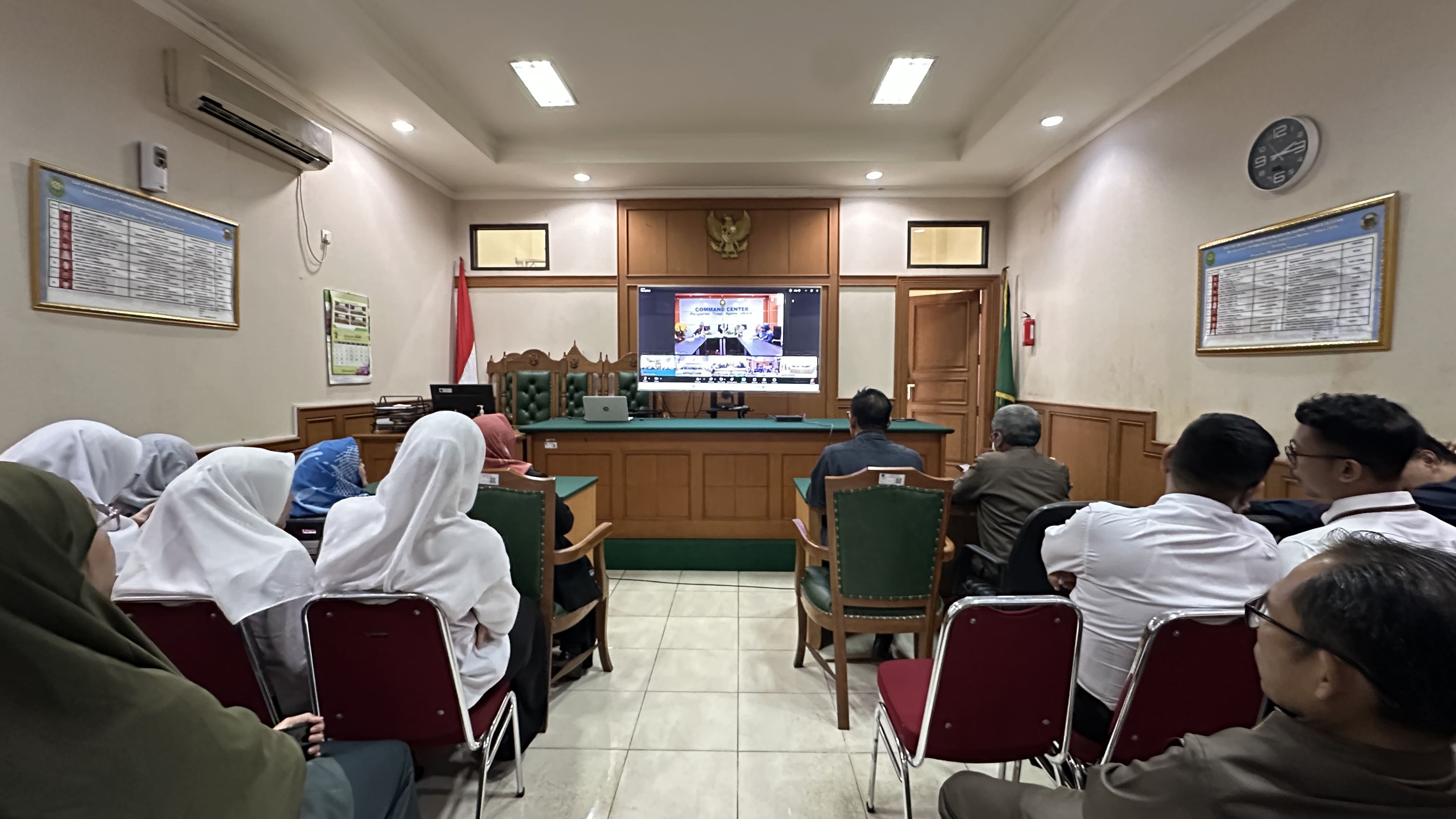 Sehubungan dengan Surat Ketua Pengadilan Tinggi Agama Jakarta No. 2631/KPTA.W9-A/UND.HM.1.1/XII/024 Pengadilan Agama Jakarta Selatan mengikuti Sosialisasi Pengisian Aplikasi Survei Triwulan IV yang dilaksanakan secara daring melalu platform zoom. Bertempat di Ruang Sidang, kegiatan ini dihadiri oleh Ketua, Hakim, Panitera, Sekretaris, Pejabat Struktural/Fungsional, pelaksana dan calon Hakim di lingkungan Pengadilan Agama Jakarta Selatan.
