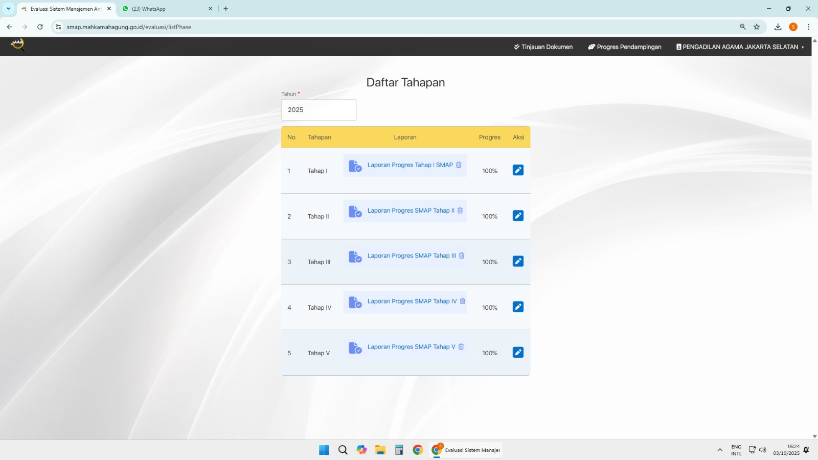 Humas PA Jakarta Selatan — Tim Satuan Manajemen Anti Penyuapan (SMAP) Pengadilan Agama Jakarta Selatan mengikuti kegiatan Penutupan Pendampingan SMAP Tahun 2025 yang diselenggarakan secara daring pada Jumat, 3 Oktober 2025. Kegiatan ini turut diikuti oleh seluruh satuan kerja yang tengah melaksanakan implementasi Sistem Manajemen Anti Penyuapan (SMAP) sesuai standar ISO 37001:2016.