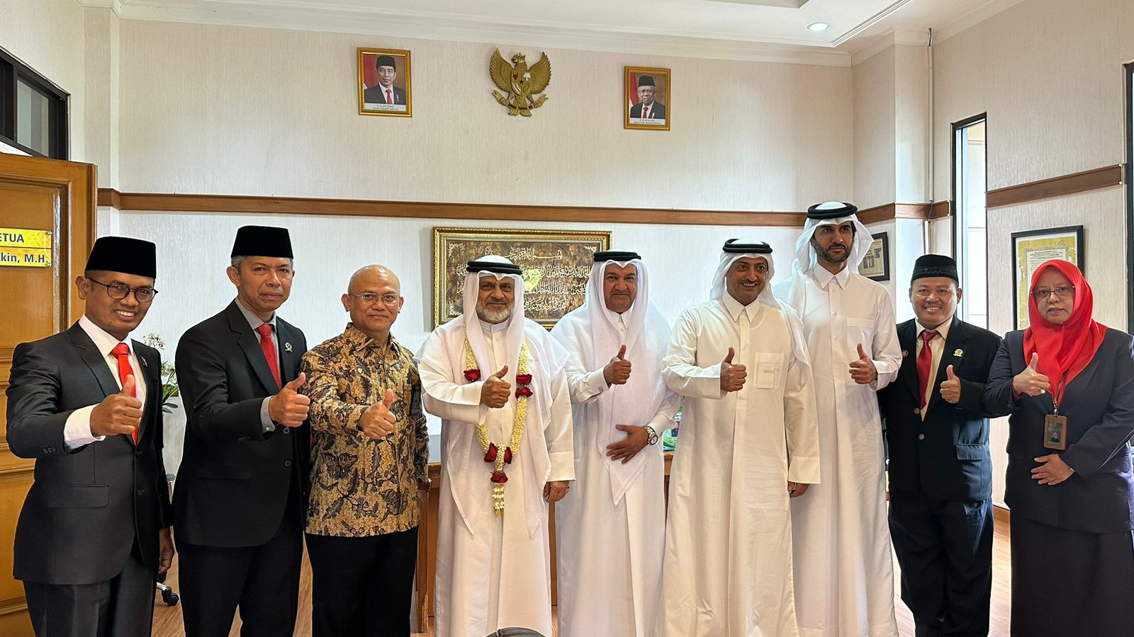 Wakil Ketua Pengadilan Agama Jakarta Selatan Fakhrurazi, S.Ag., M.H.I. didampingi Hakim, Panitera, Sekretaris, Panitera Muda dan Kasubbag menerima kunjungan Wakil Ketua Mahkamah Agung Qatar Muhammad Al Manshuri didampingi oleh Hakim Agung Nashir Yusuf Al Abdul Gani, Hakim Agung Ibrahim Hilal Al Muhannadi dan Sekretaris Jenderal Hamd Yusuf Al Marwani pada Rabu, 22 Februari 2023 di Pengadilan Agama Jakarta Selatan.
